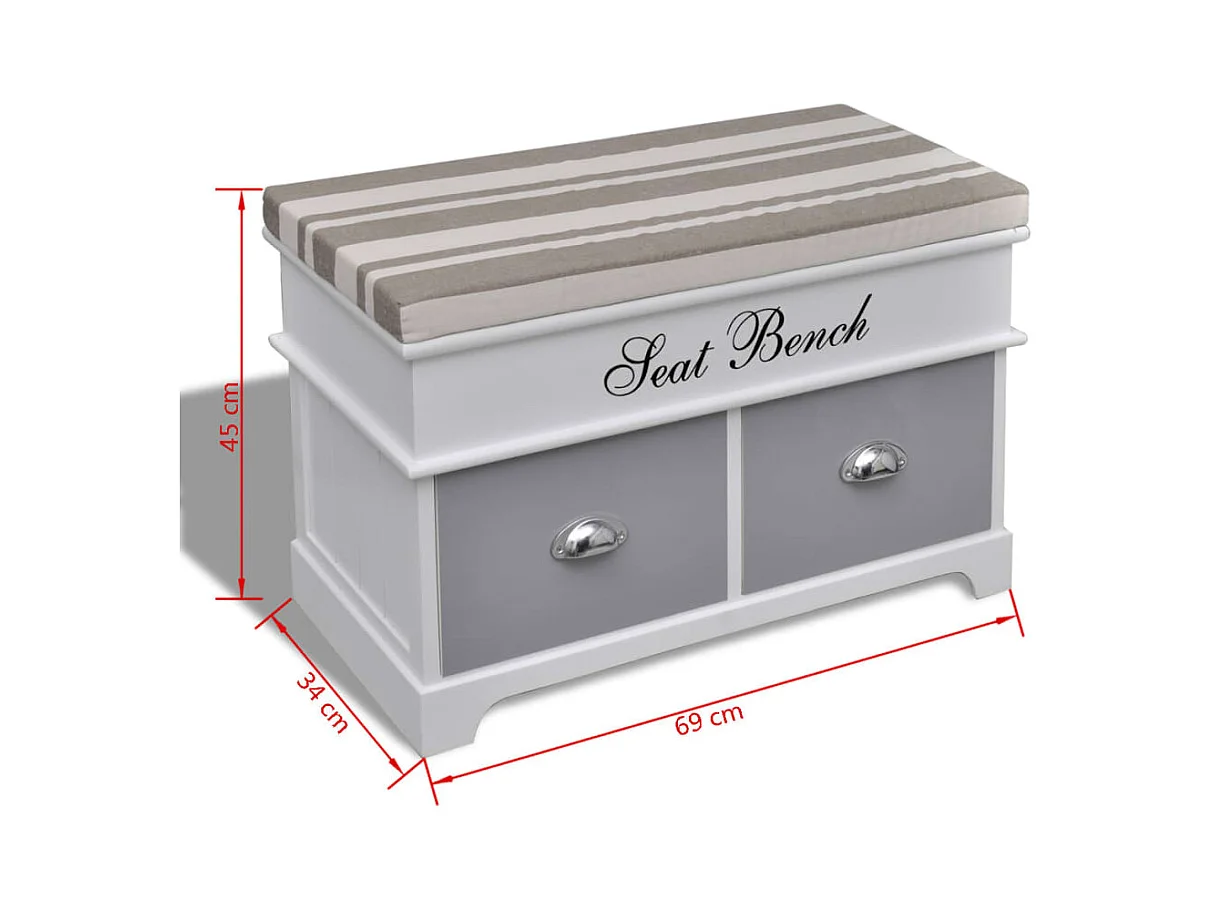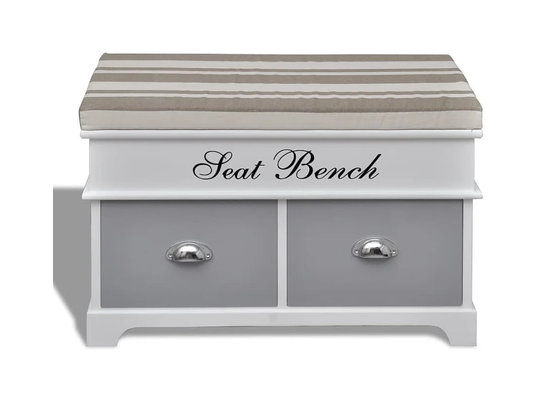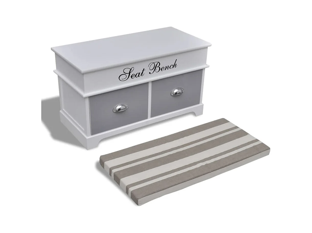 Banco de entrada e arrumação com almofada cinza 2 gavetas Branco