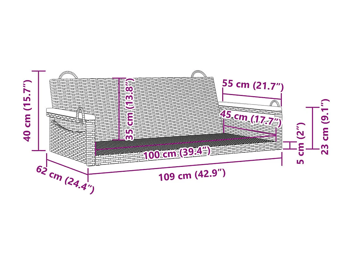 Banco baloiço 109x62x40 cm vime PE cinzento