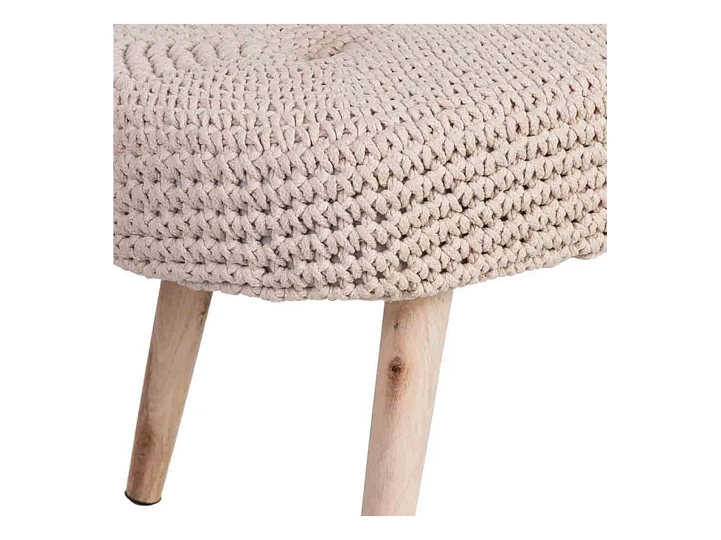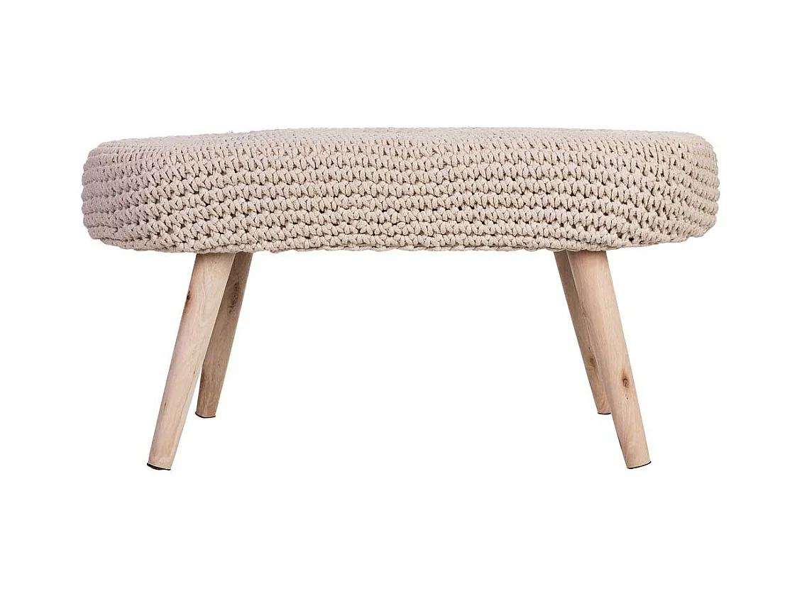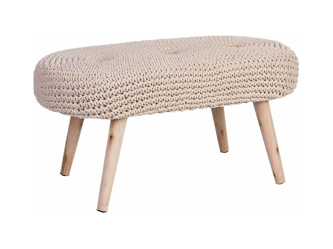 Banco bege em algodão entrançado e madeira 82x43x43h cm