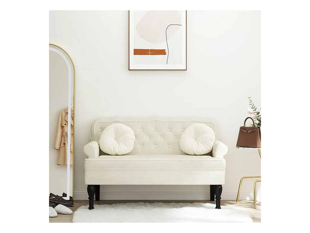 Banco com encosto creme 119,5x64,5x75 cm veludo