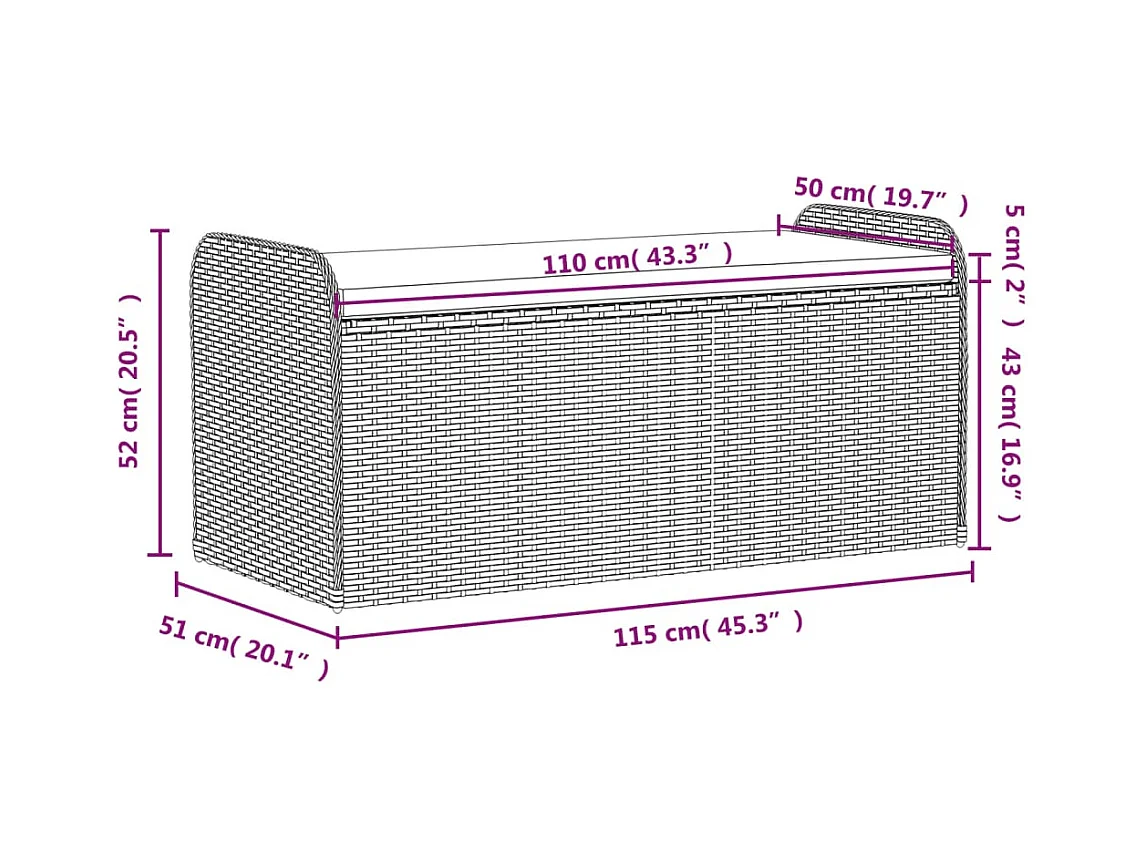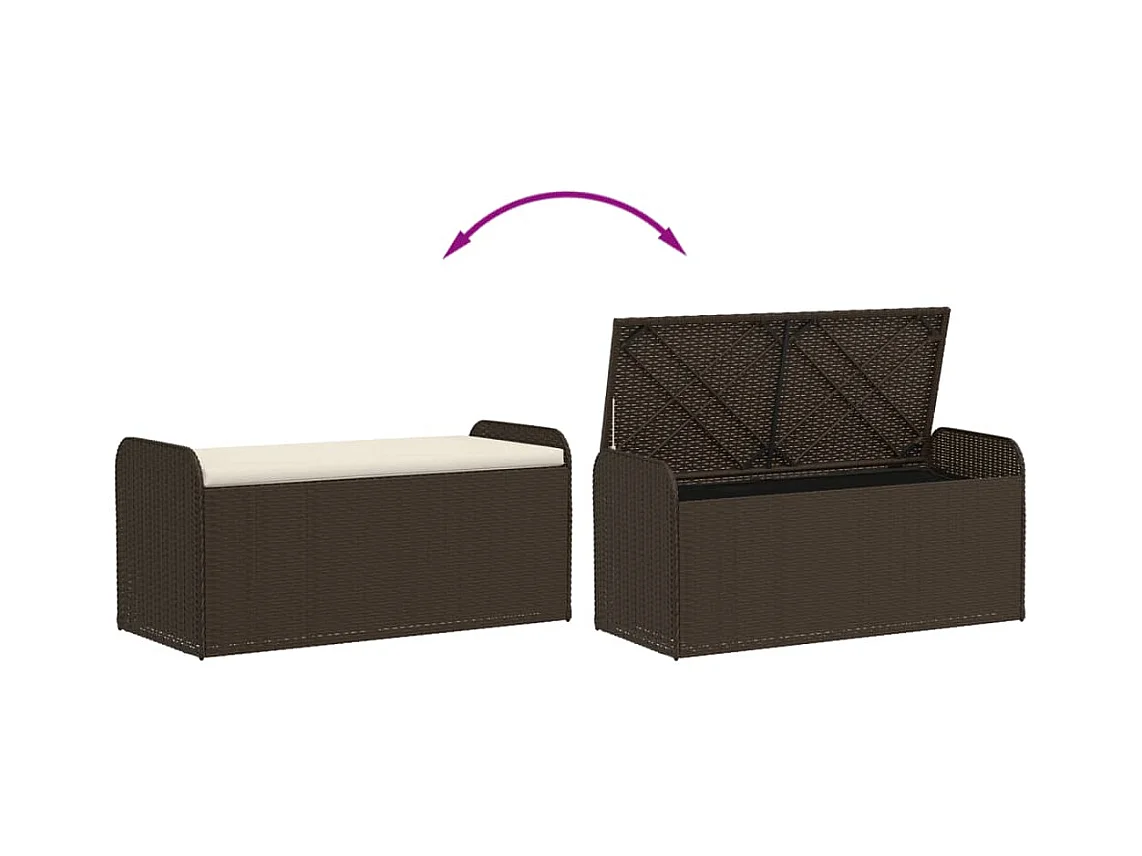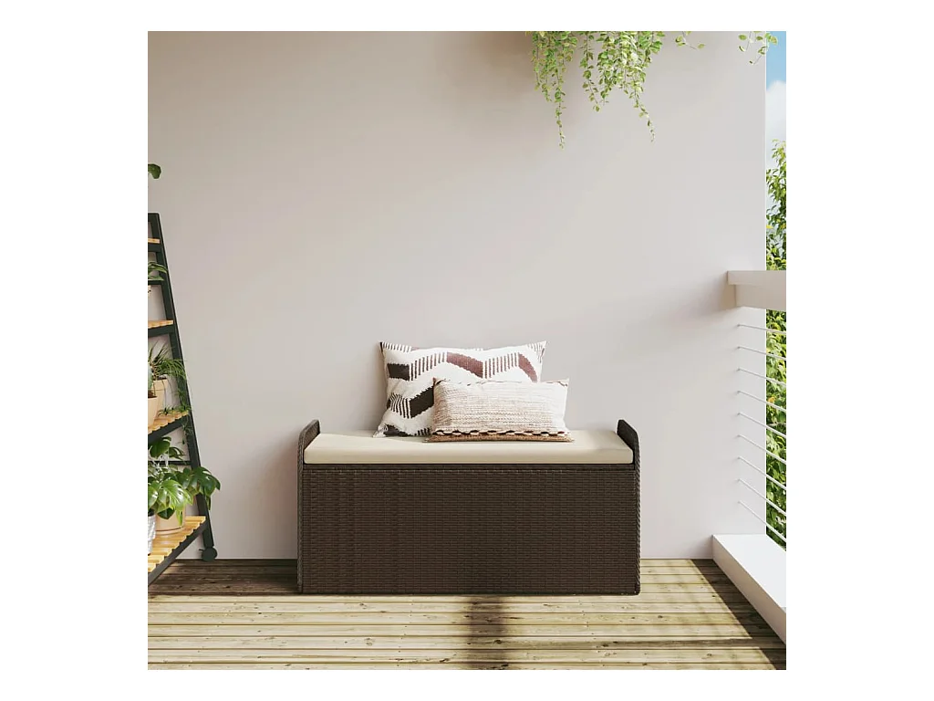 Banco de armazenamento e almofada marrom 115x51x52 cm resina tecida