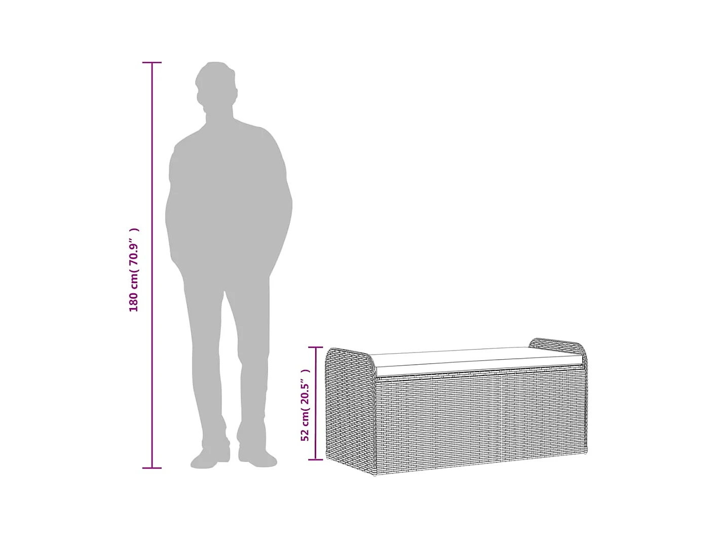 Banco de arrumação com almofadão 115x51x52 cm vime PE castanho