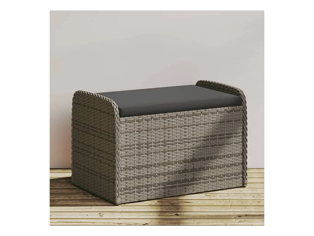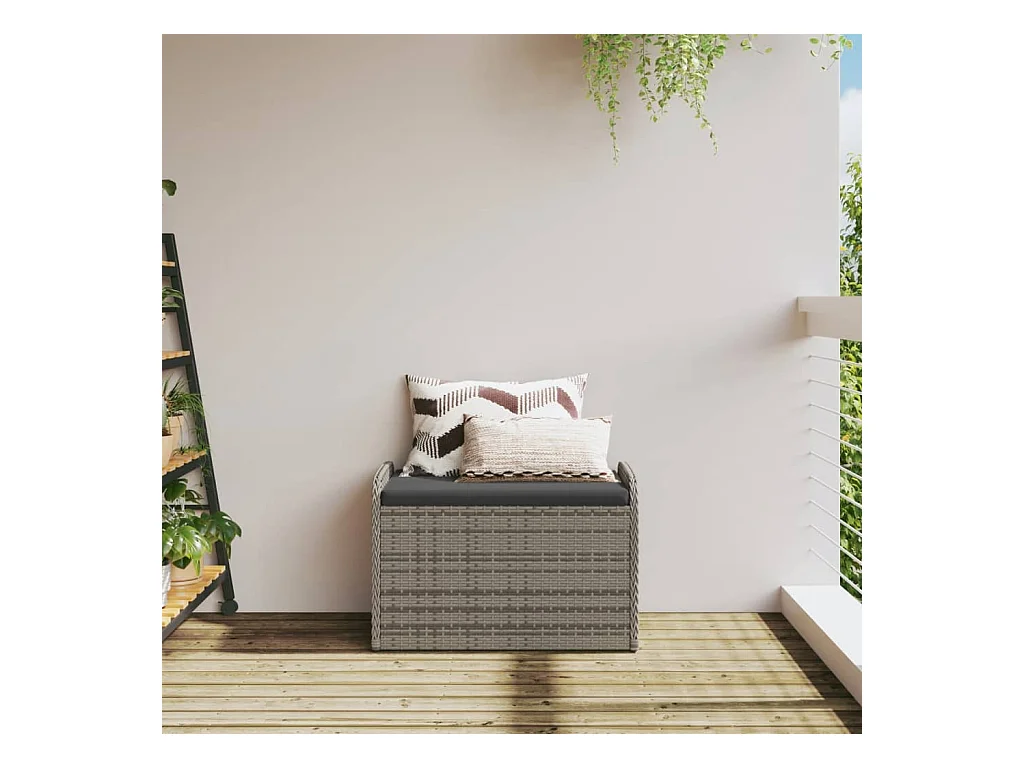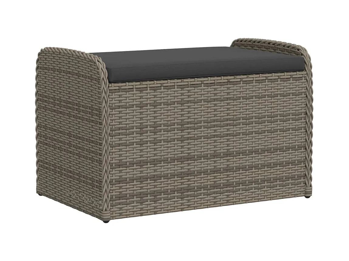 Banco de arrumação com almofadão 80x51x52 cm vime PE cinzento PT753911