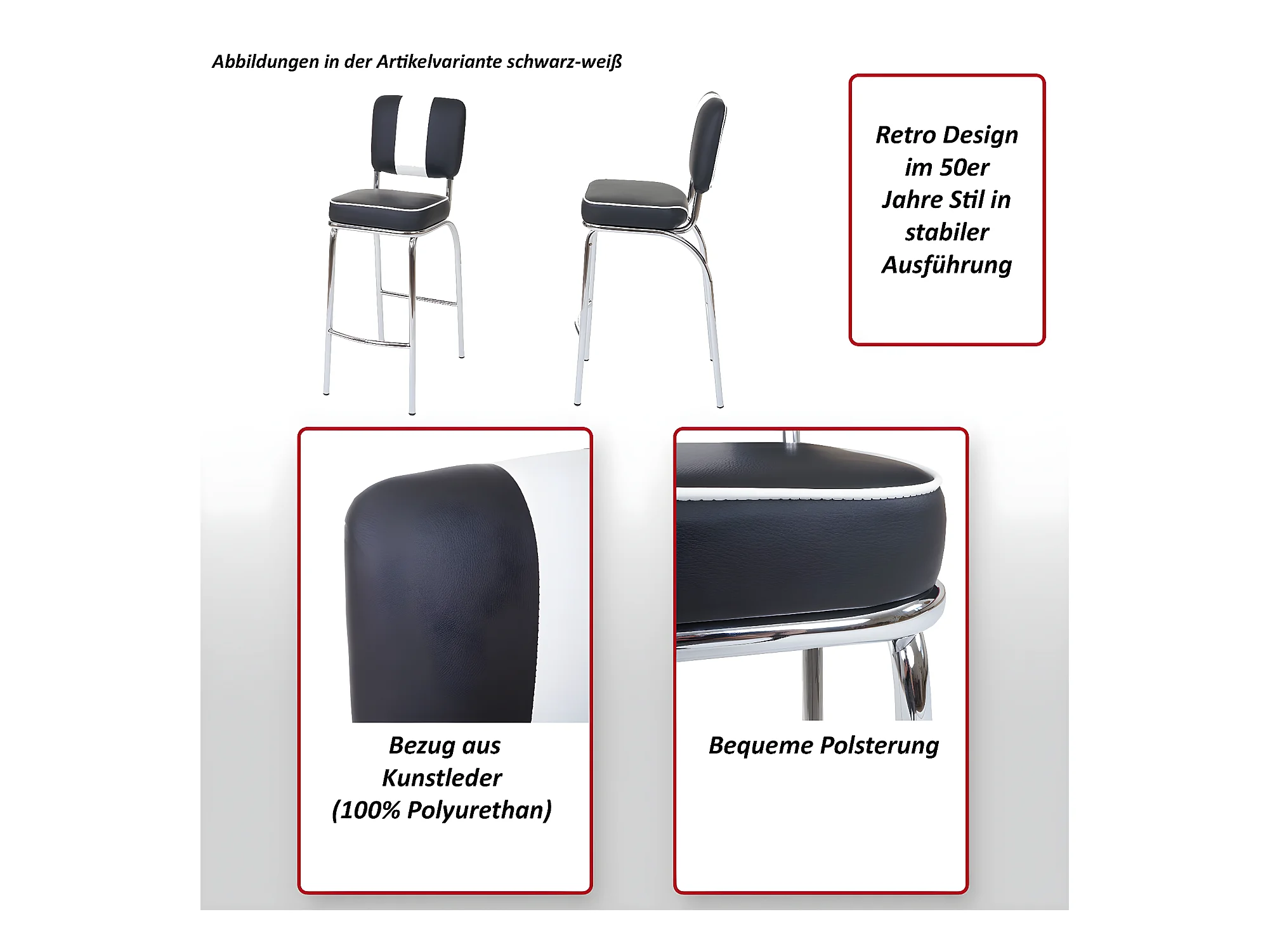 Banco de bar MCW-G87 (conjunto de 2), imitação de pele preto-branco, base cromada