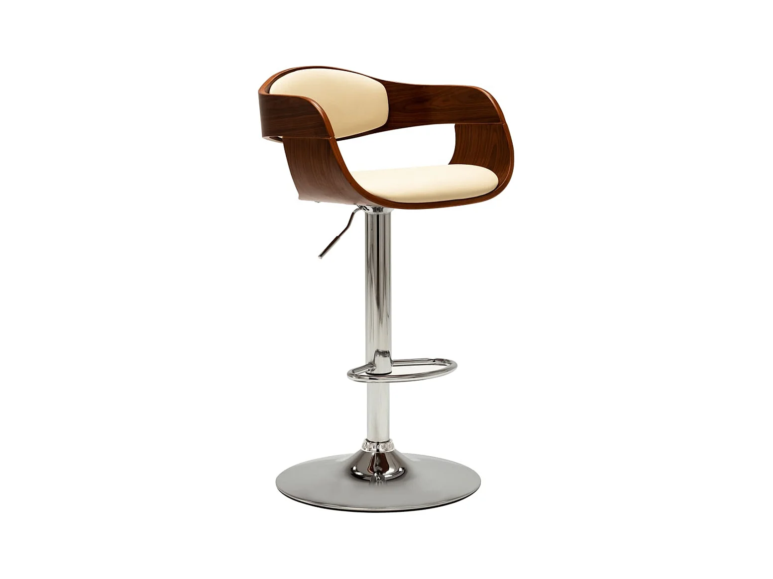 Banco de bar madeira curvada e couro artificial cor creme PT620462