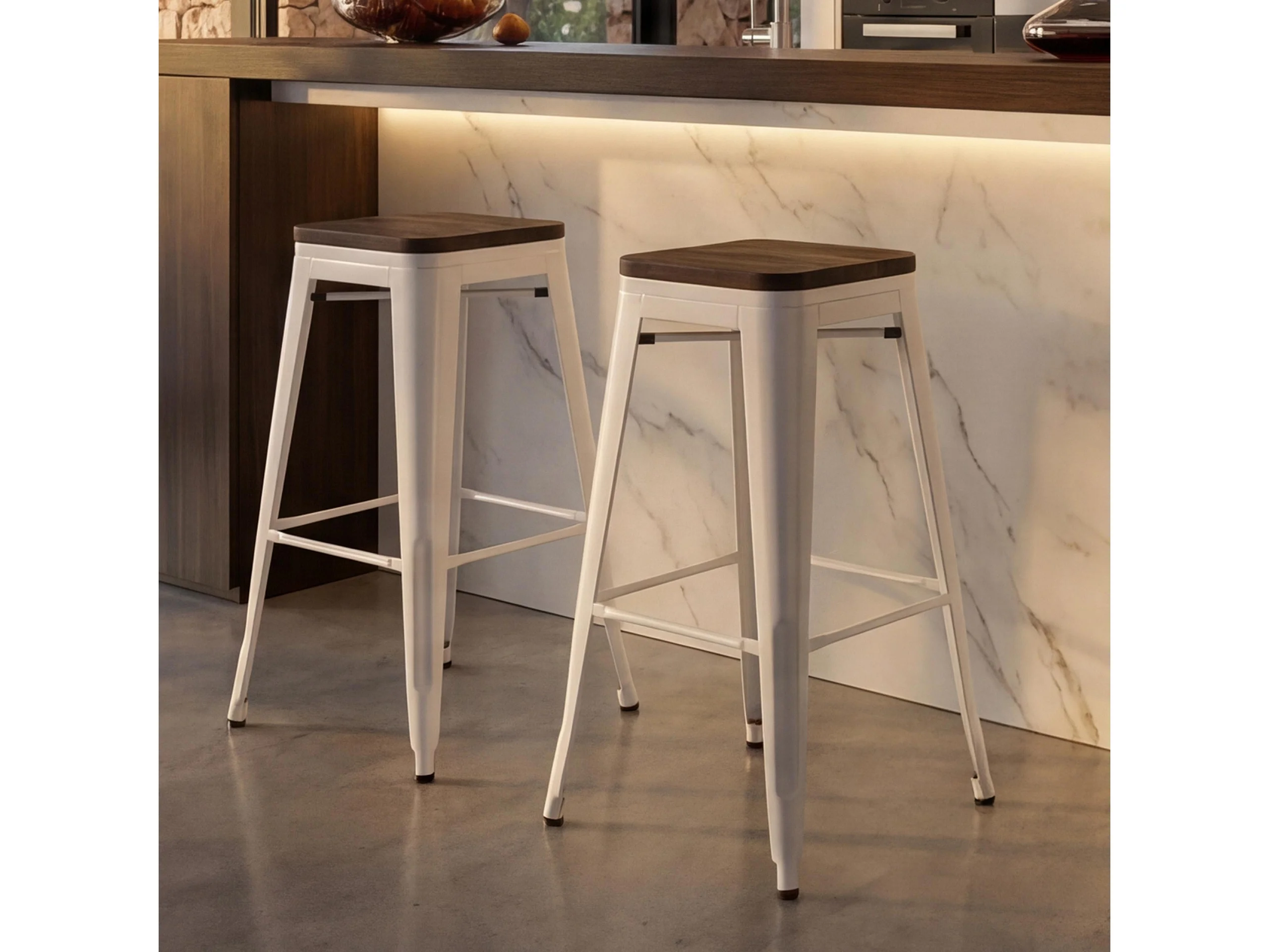 Banco de bar MCW-A73 (conjunto de 2), branco