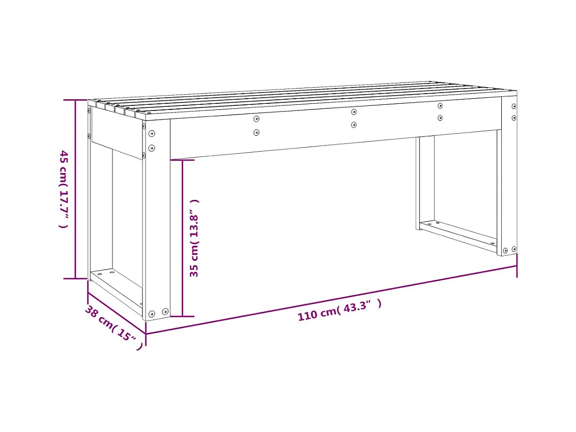Banco de jardim 110x38x45 cm em madeira maciça de abeto Douglas