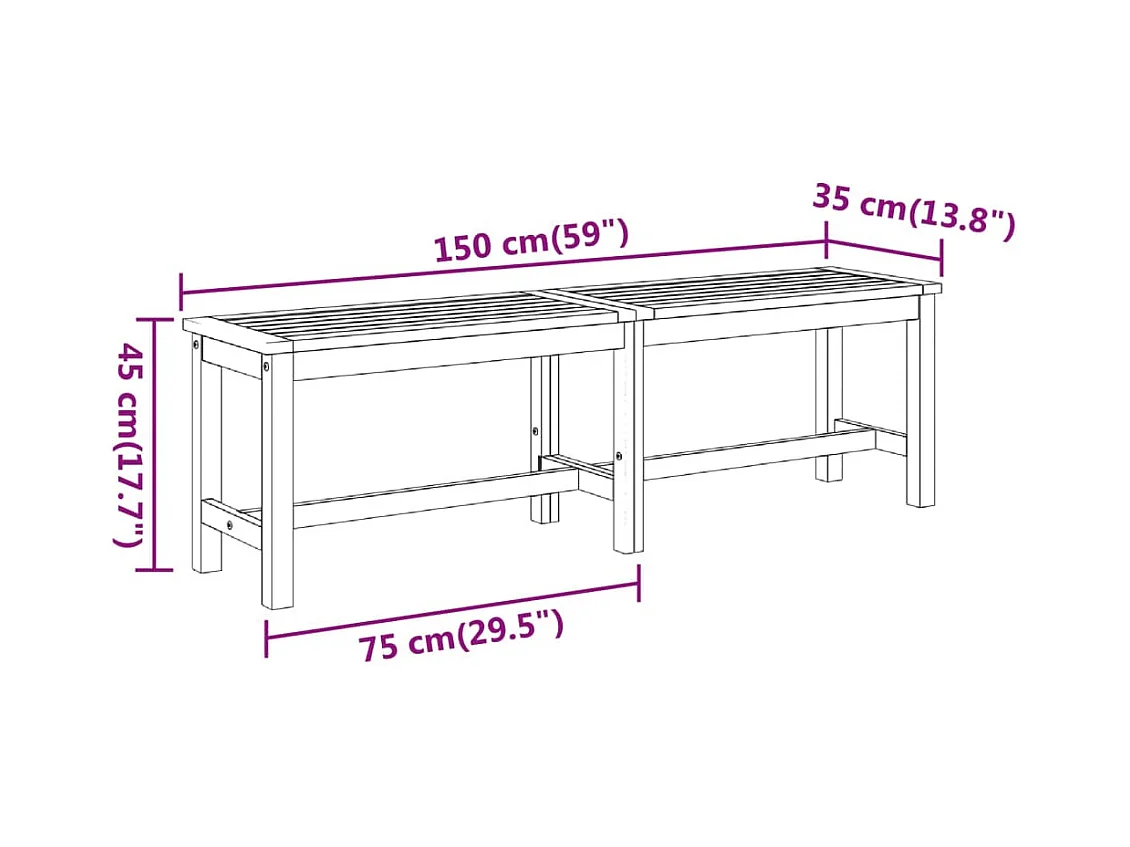 Banco de jardim 150x35x45 cm madeira maciça de acácia