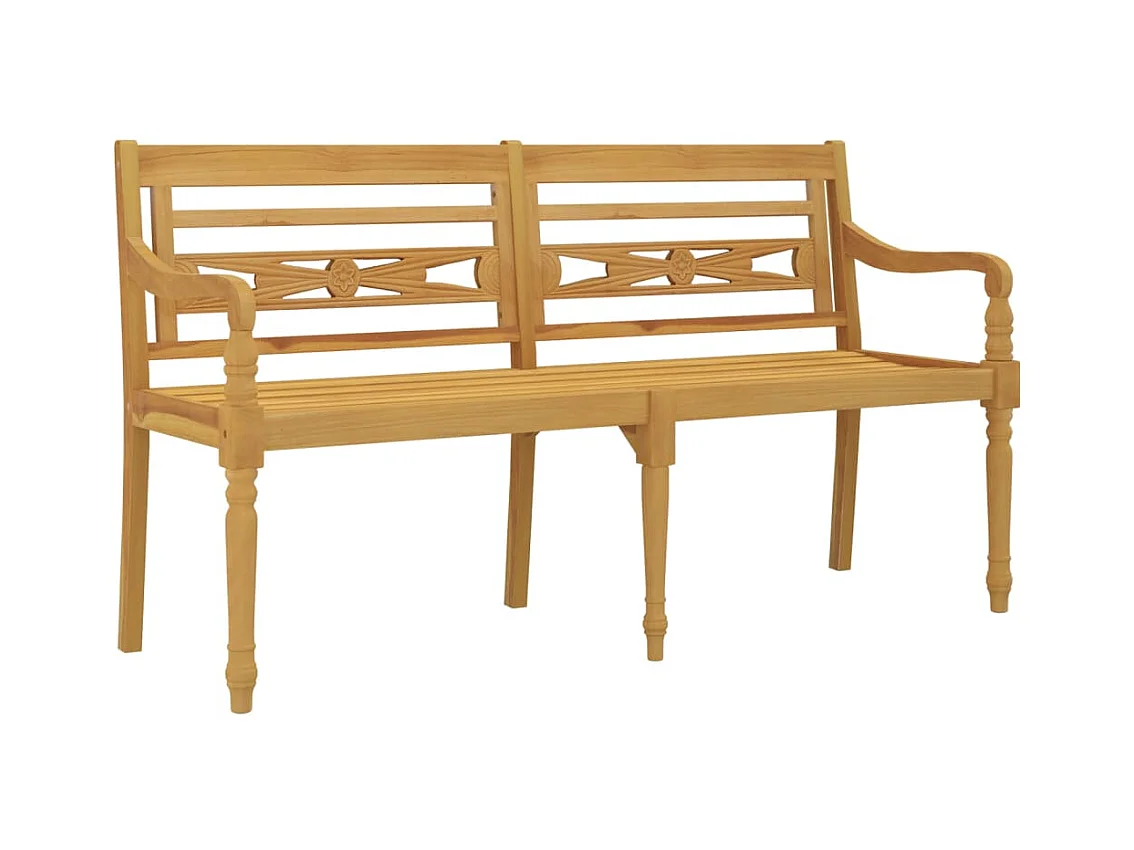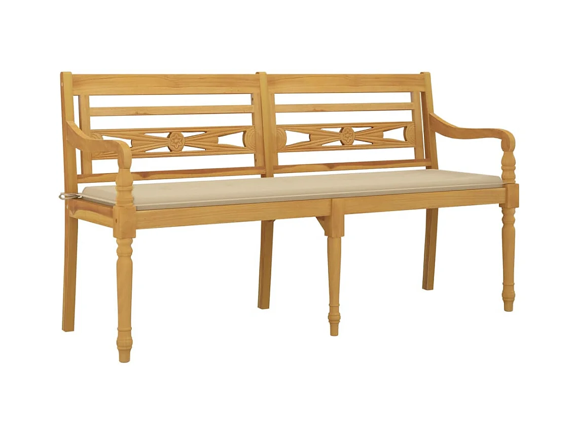Banco de jardim ao ar livre, mobiliário de pátio, terraço com almofada bege 150 x 50 x 3 cm madeira maciça de teca 02_0011047