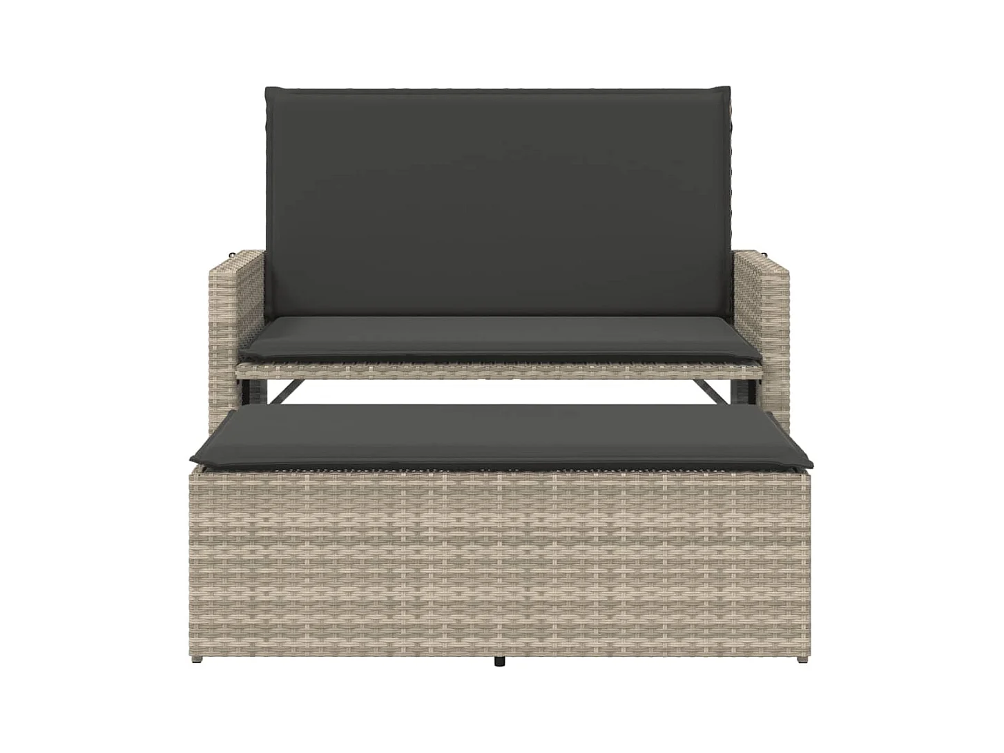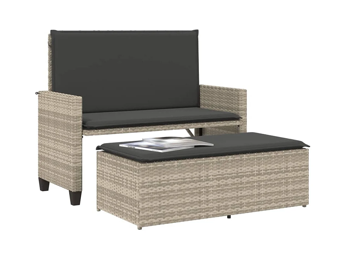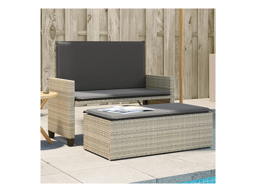 Banco de jardim com almofadões e apoio de pés vime PE cinzento PT120242