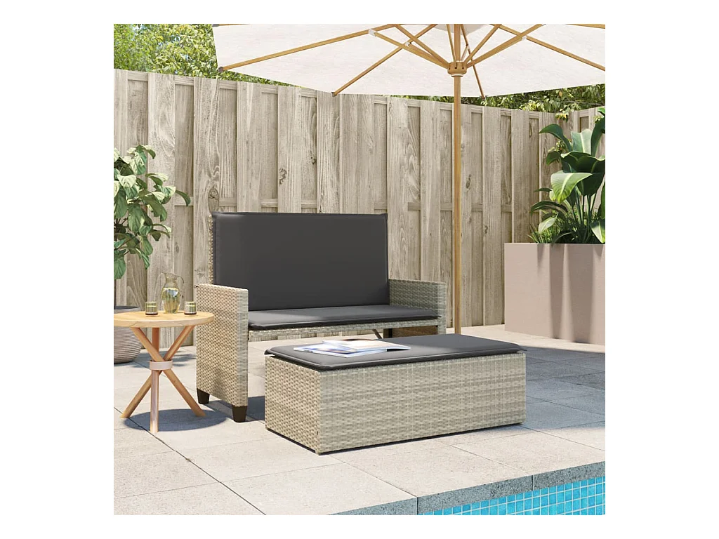 Banco de jardim c/ almofadões e apoio pés vime PE cinza-claro PT115725