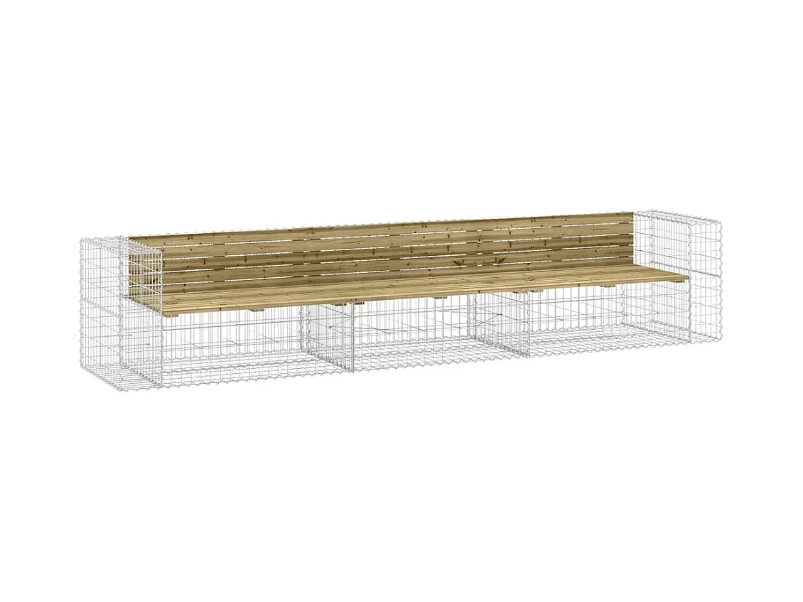 Banco de jardim c/ design gabião 347x71x65,5cm pinho impregnado