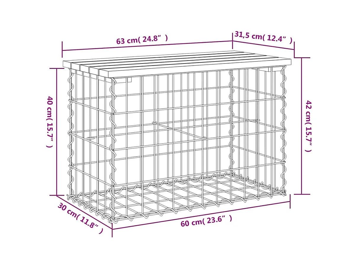 Banco de jardim c/ design gabião 63x31,5x42 cm pinho maciço