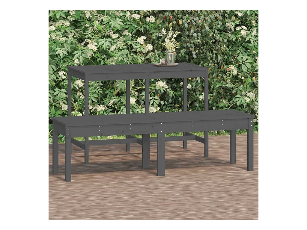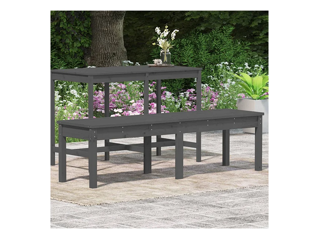 Banco de jardim cinza de 2 lugares 159,5x44x45cm em madeira maciça de pinho