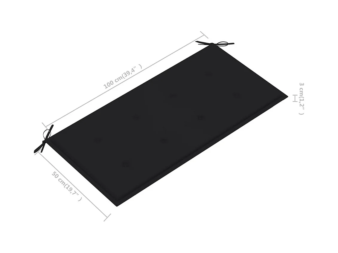 Banco de jardim com almofada preta 112 cm Madeira maciça de teca