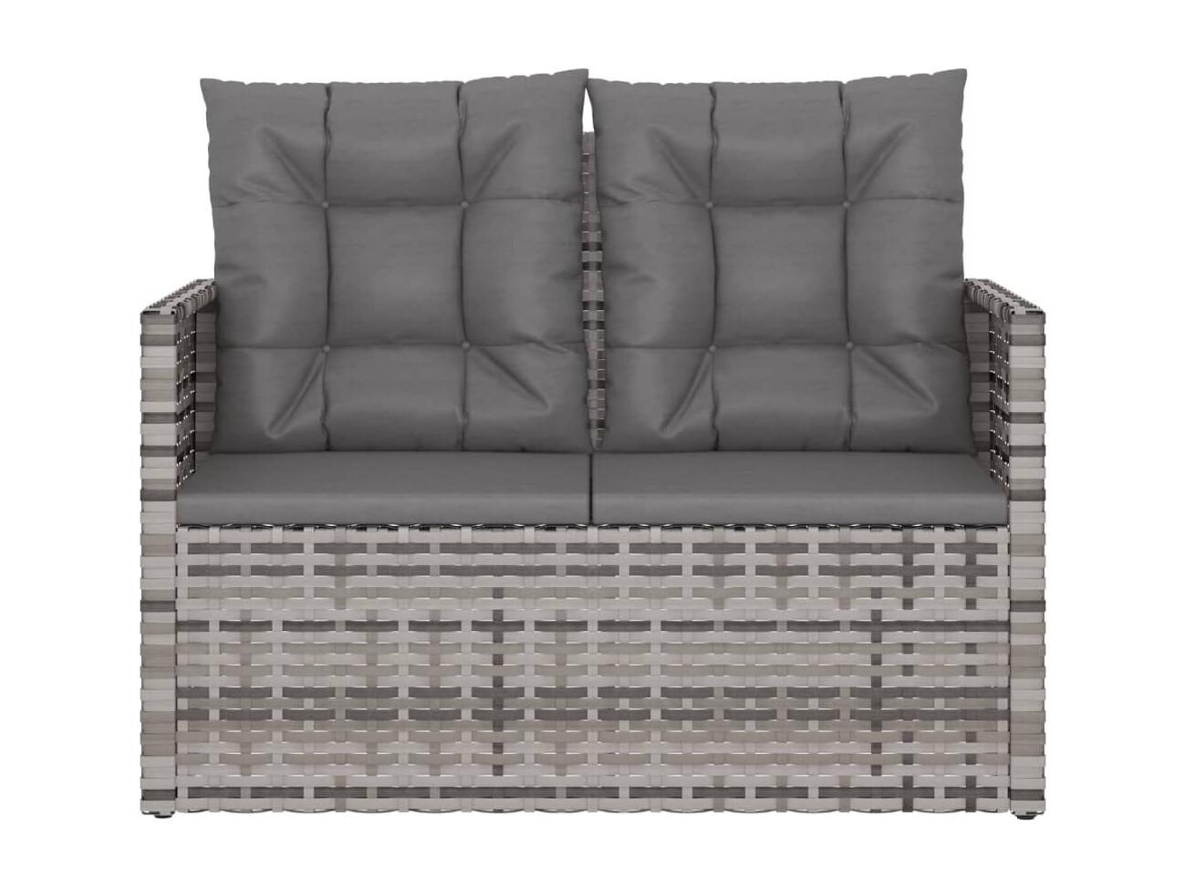 Banco de jardim com almofadões e apoio de pés vime PE cinzento PT120242