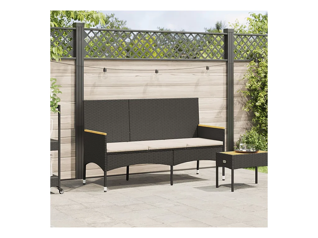 Banco de jardim com almofadões 176 cm vime PE preto