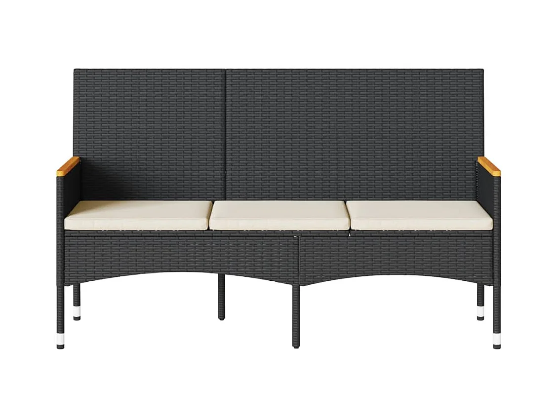 Banco de jardim com almofadões 3 lugares vime PE preto