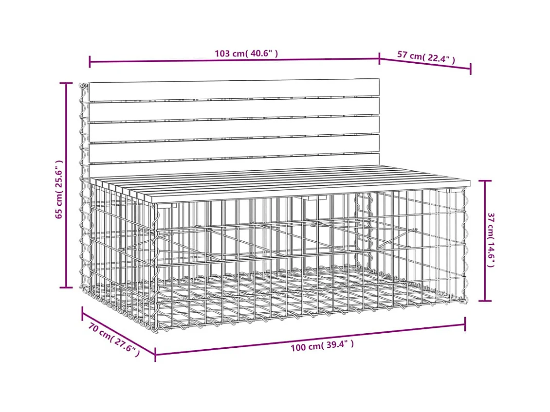 Banco de jardim design Gabion 103x70x65 cm madeira de pinho impregnada