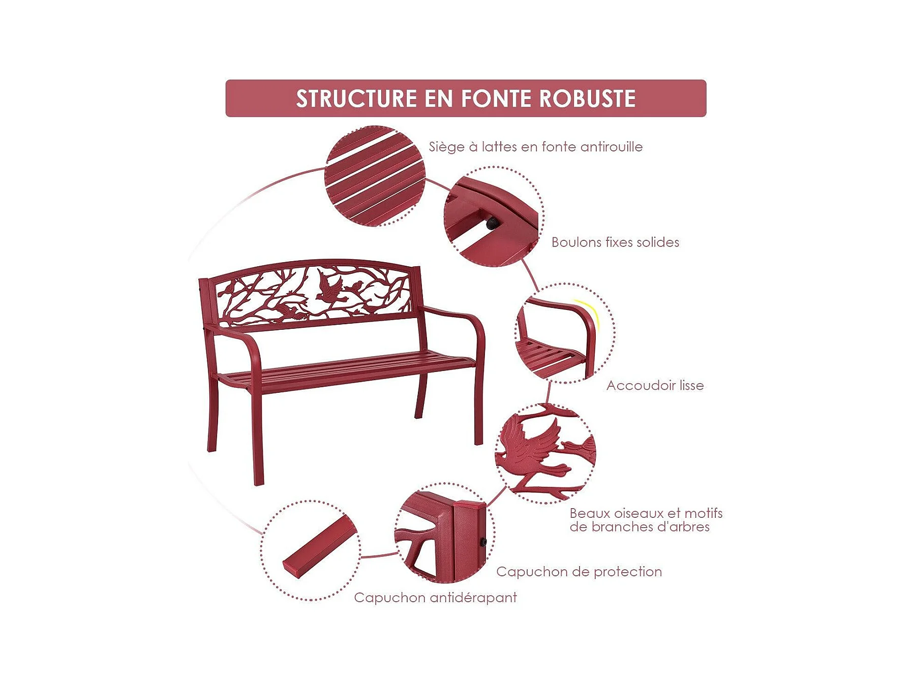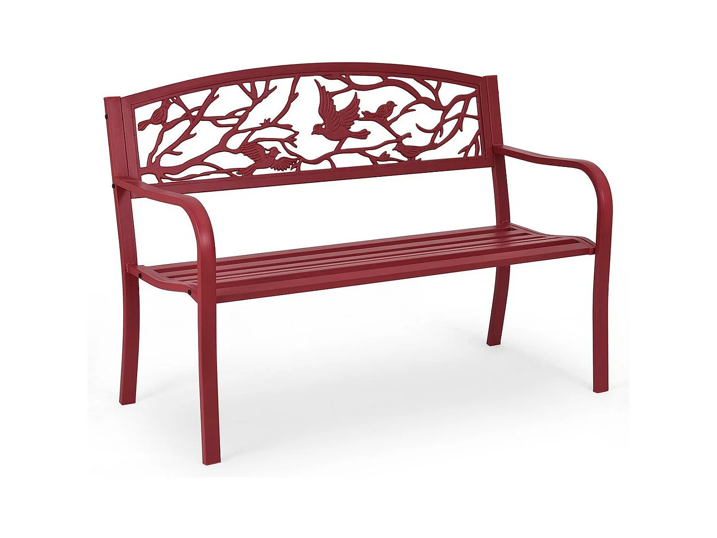 Banco de jardim de ferro durável estilo contemporâneo 2-3 lugares vermelho 20_0000203