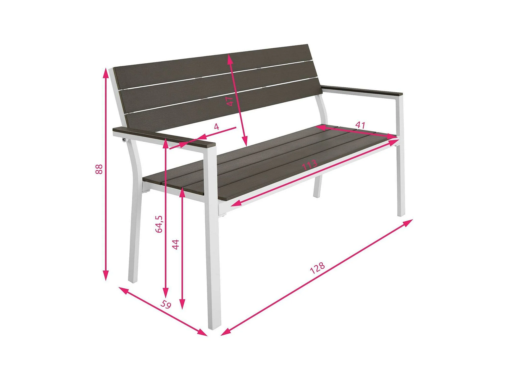 Banco de jardim para 2 pessoas para uso externo alumínio 129 cm cinza branco 08_0000249