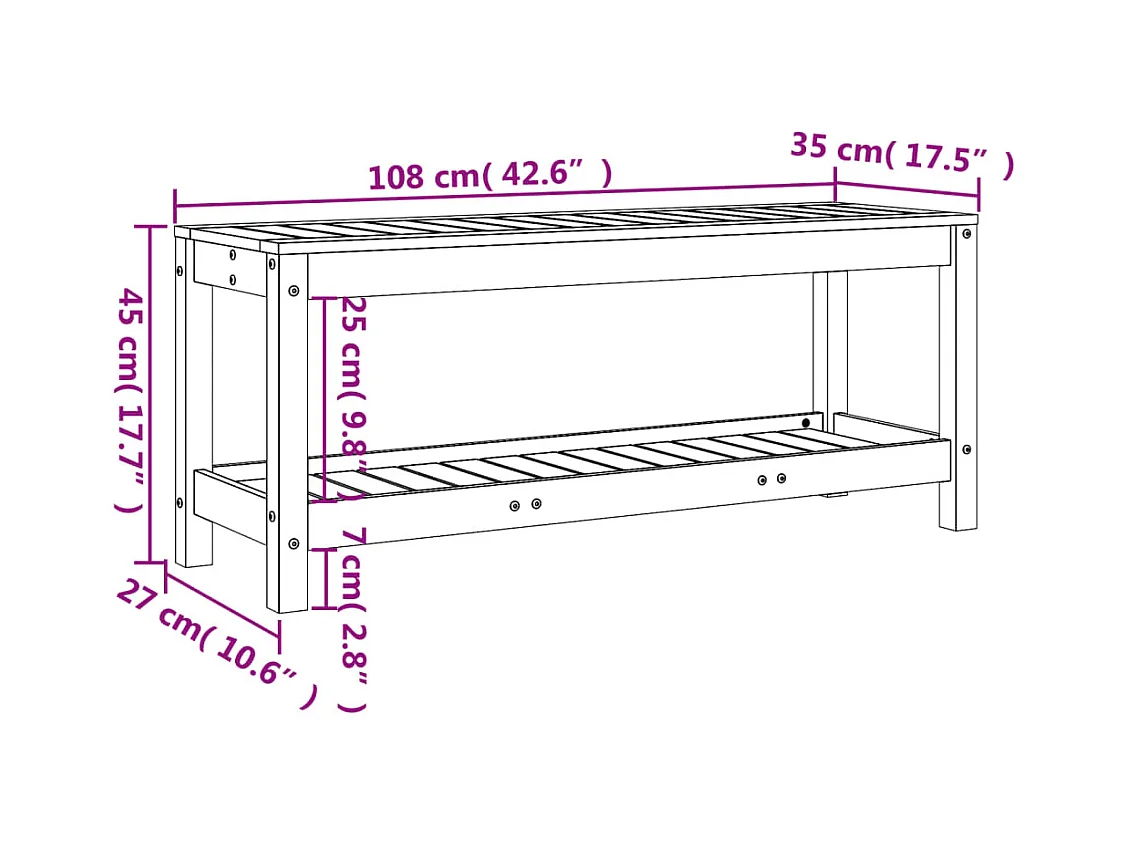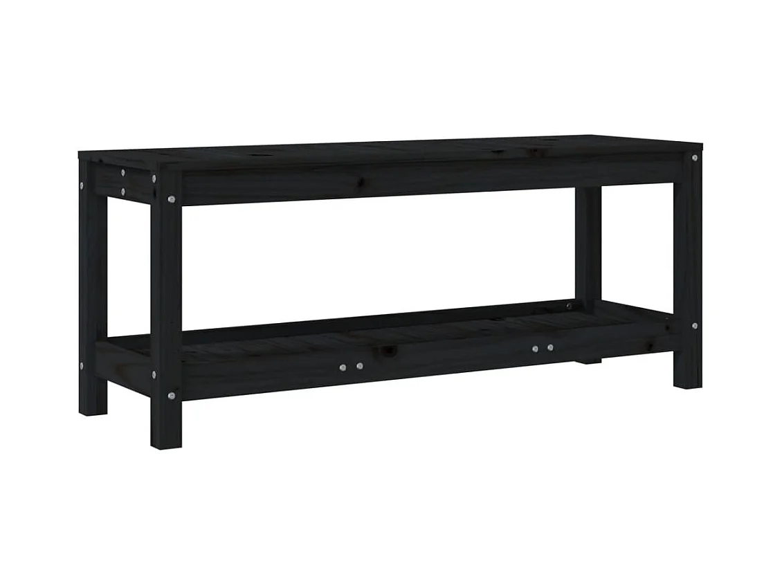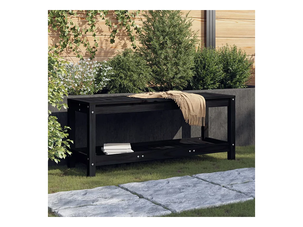 Banco de jardim preto 108x35x45 cm em madeira maciça de pinho