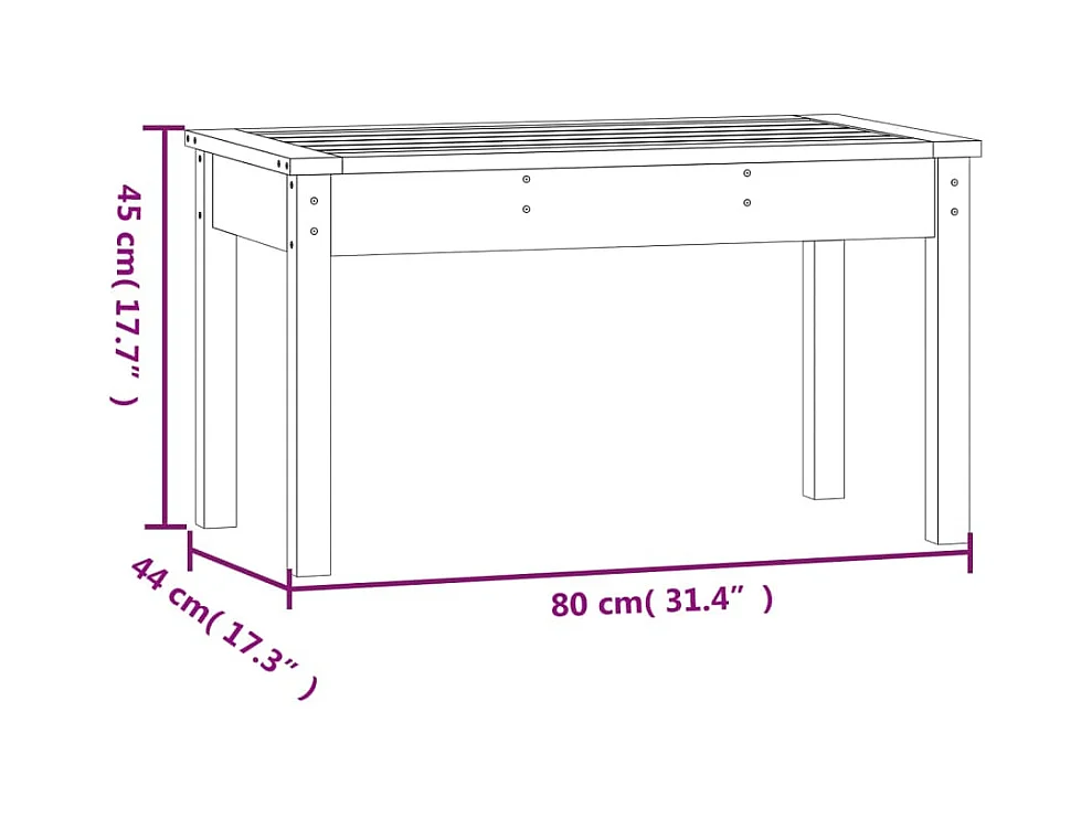Banco de jardim preto 80x44x45 cm em madeira maciça de pinho