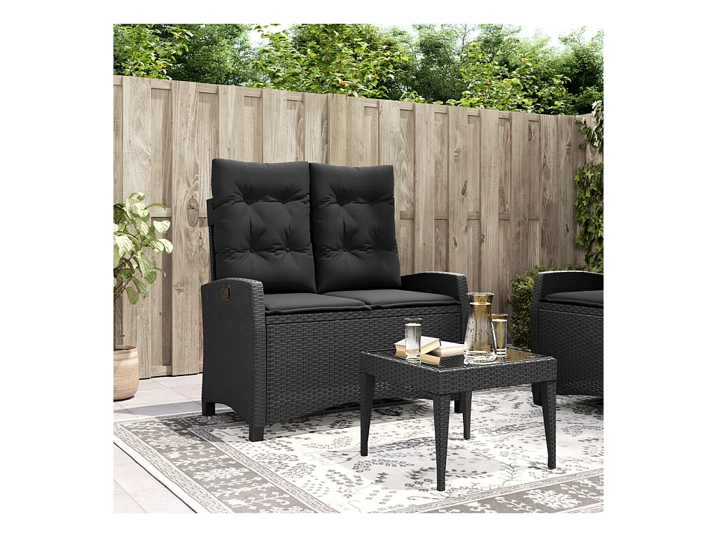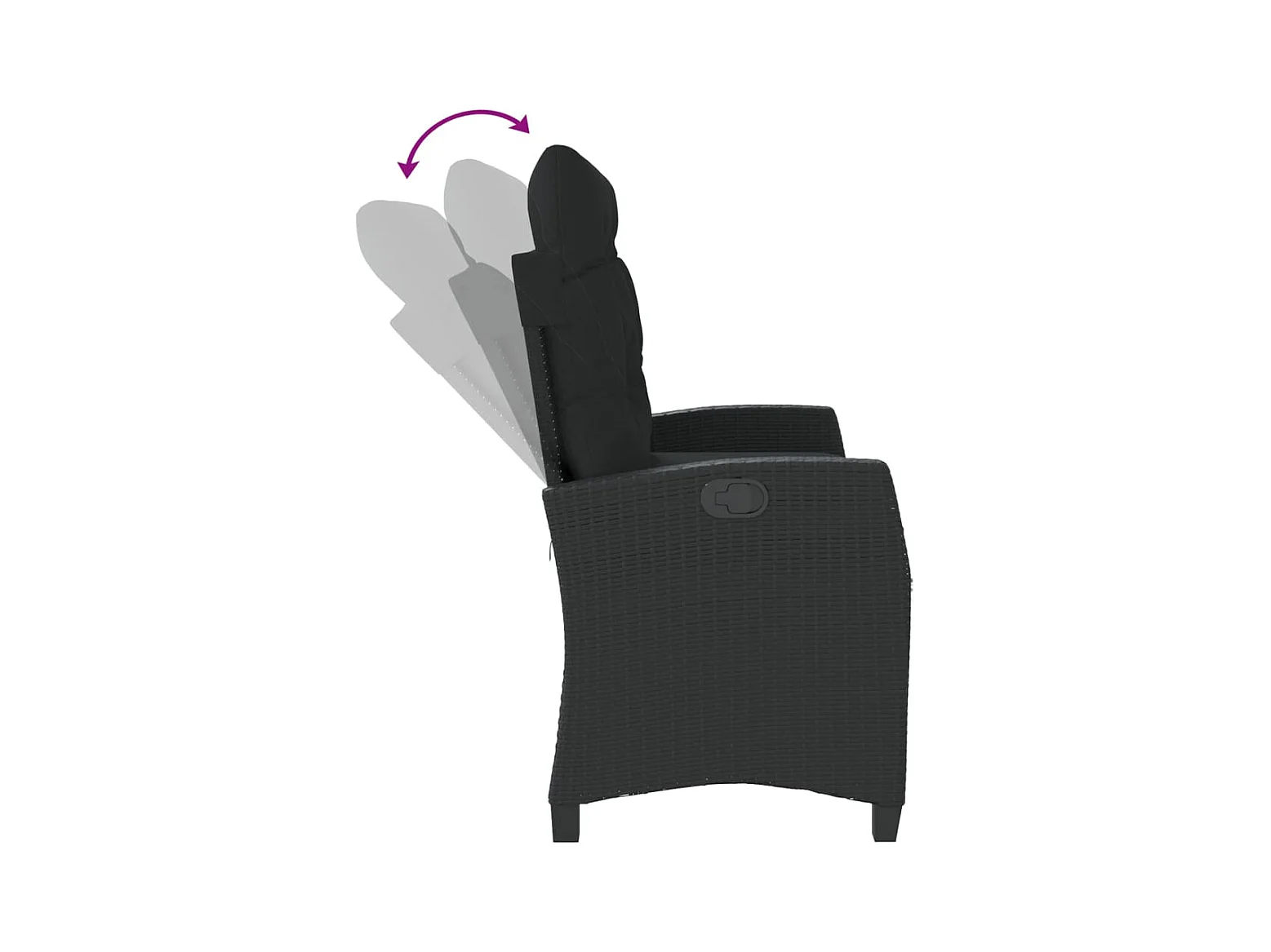 Banco de jardim reclinável com almofadas de resina tecida preta