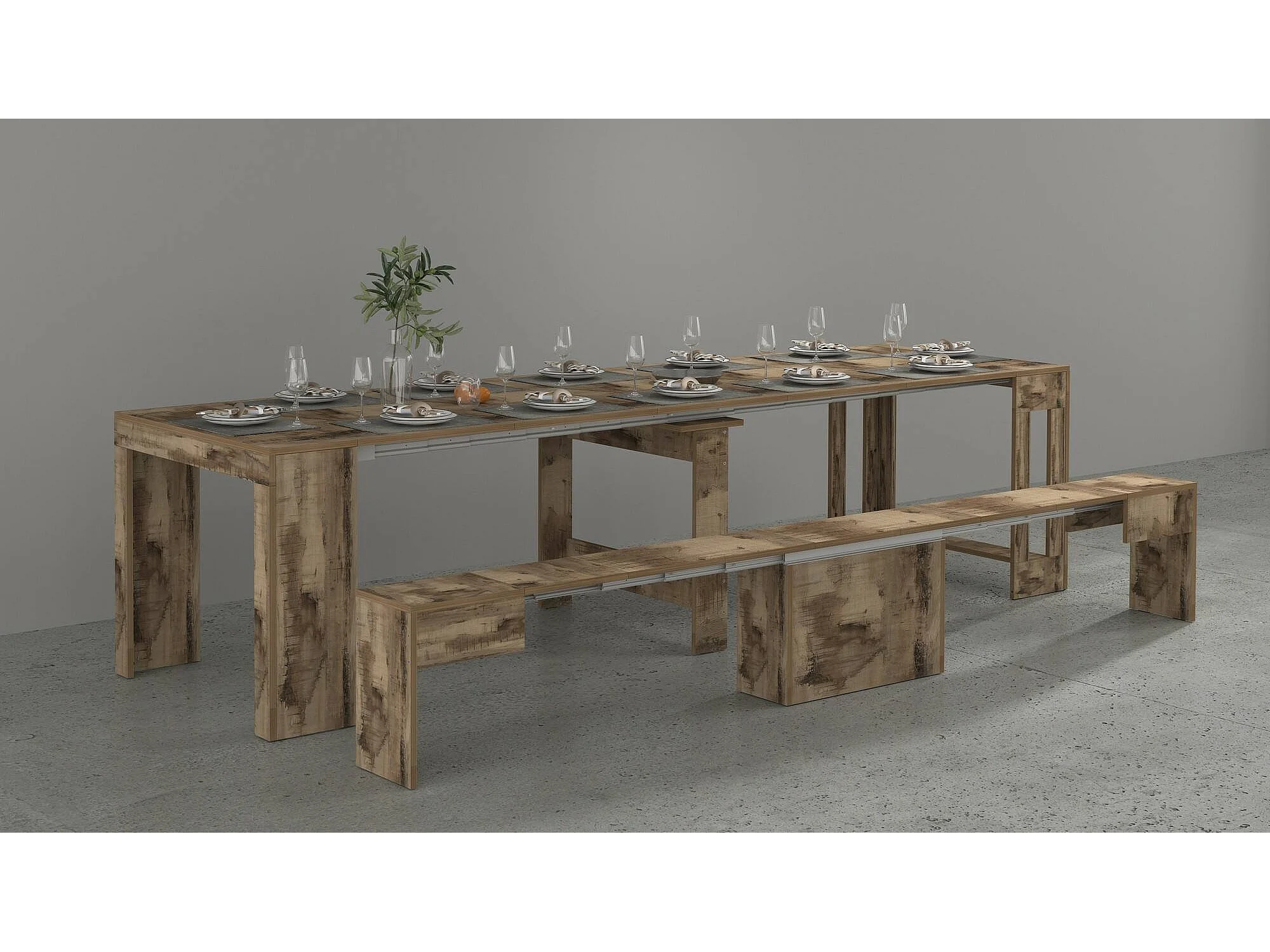 Banco Dcolasuon, Conjunto de 2 lugares para mesa de jantar, Bancos extensíveis, 290x25h45 cm, Olmo
