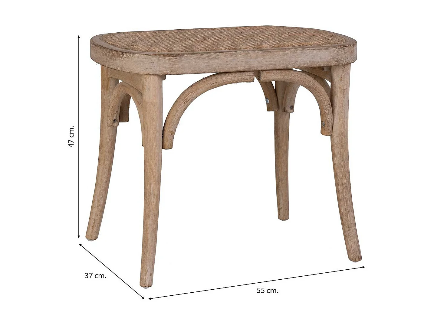 Banco em madeira com assento em vime 55x37x47h cm