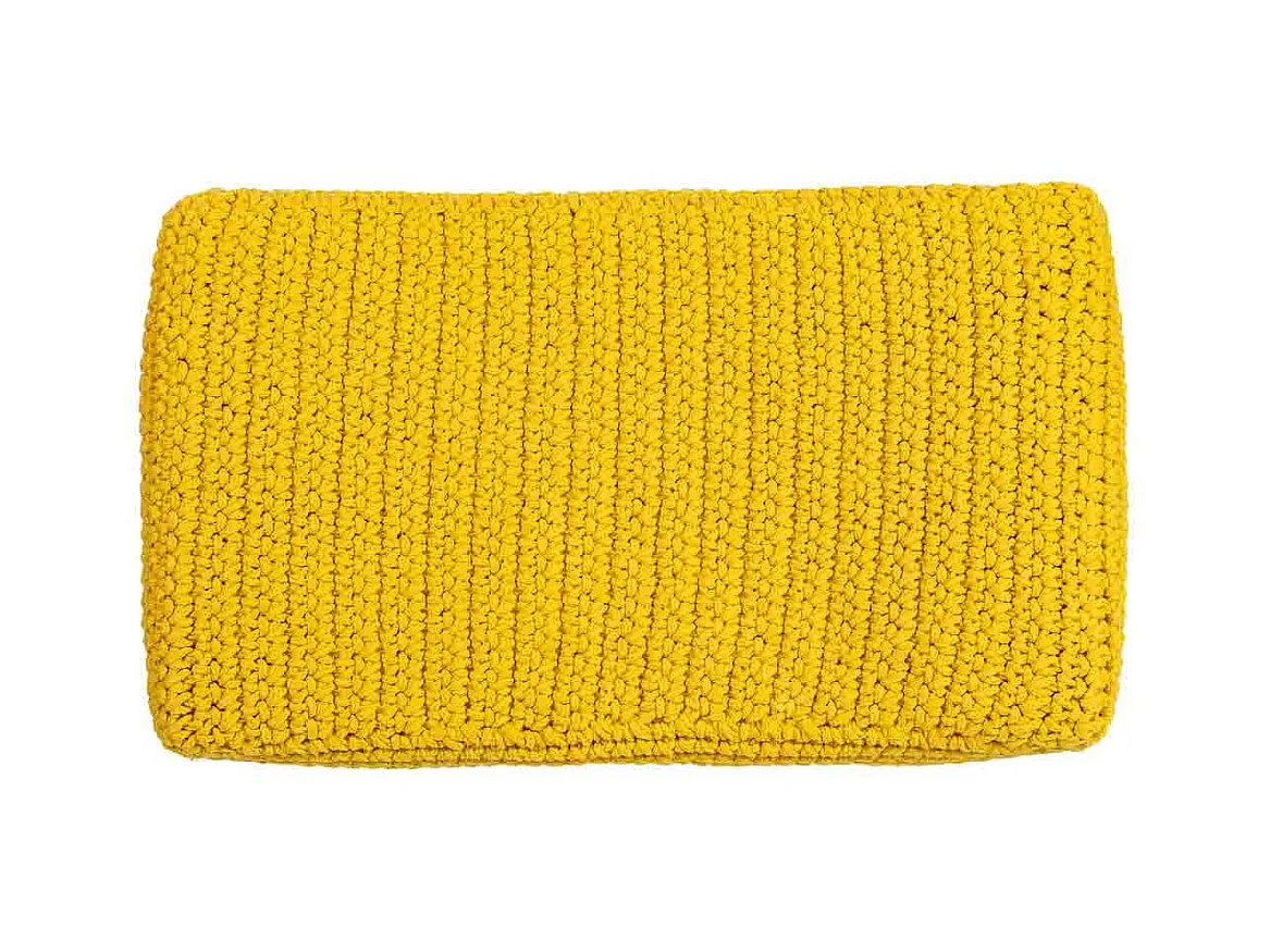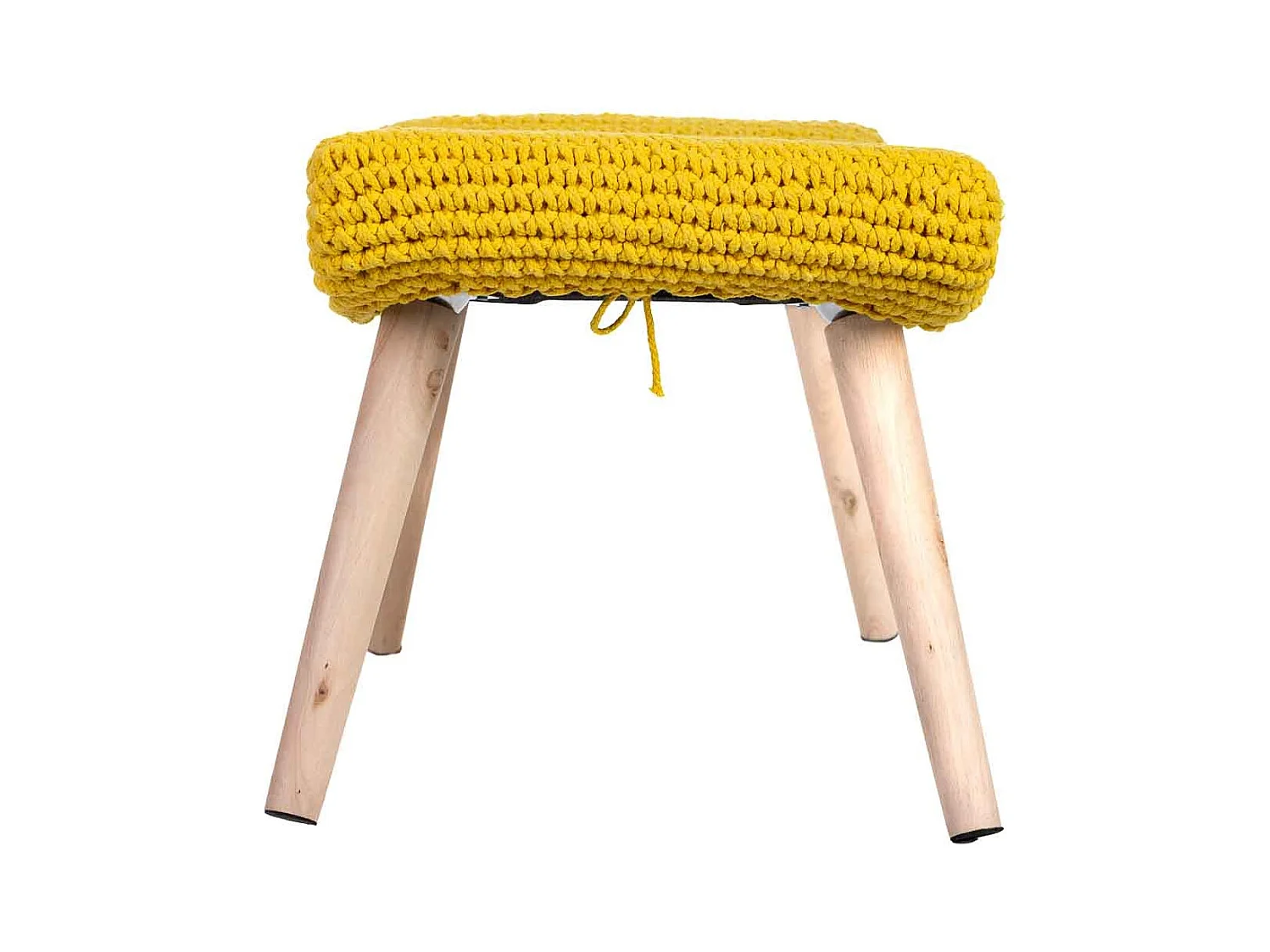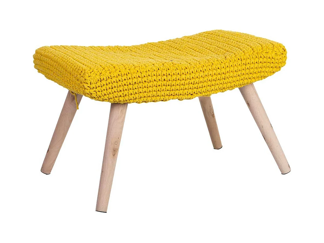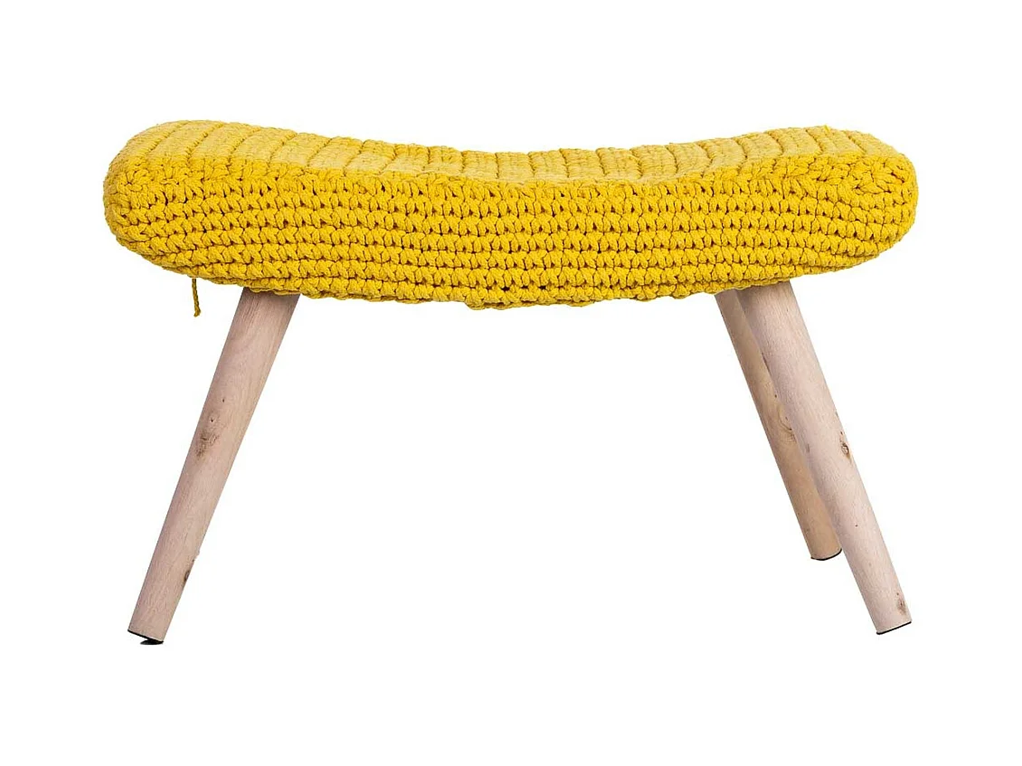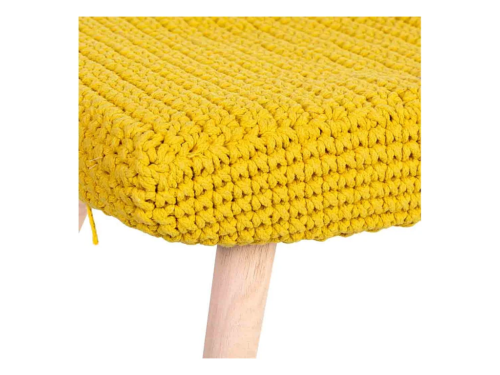 Banco amarelo em algodão entrançado e madeira 35x35x44h cm