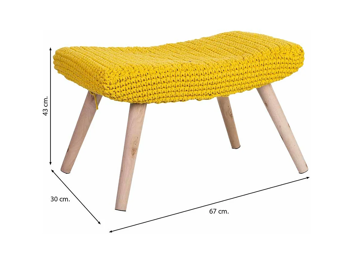 Banco em madeira e algodão entrançado amarelo 67x30x43h cm