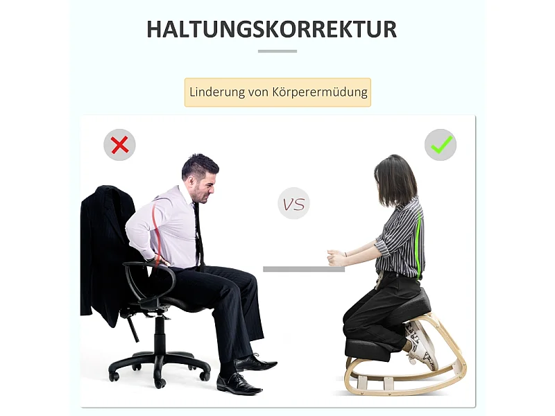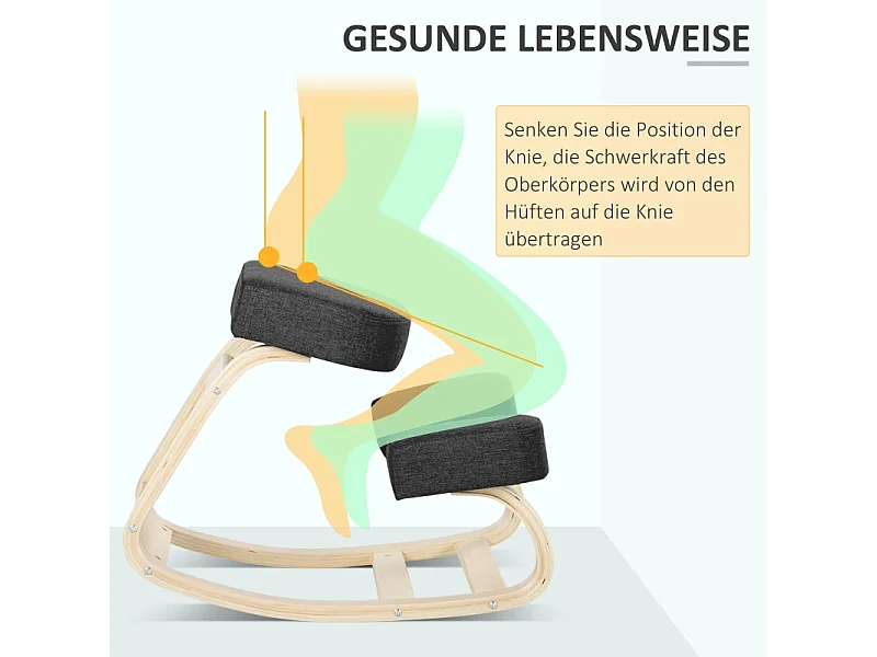 Banco ergonômico para joelhos com assento acolchoado, promove postura saudável, estrutura de madeira de bétula, capacidade de 120 kg, preto