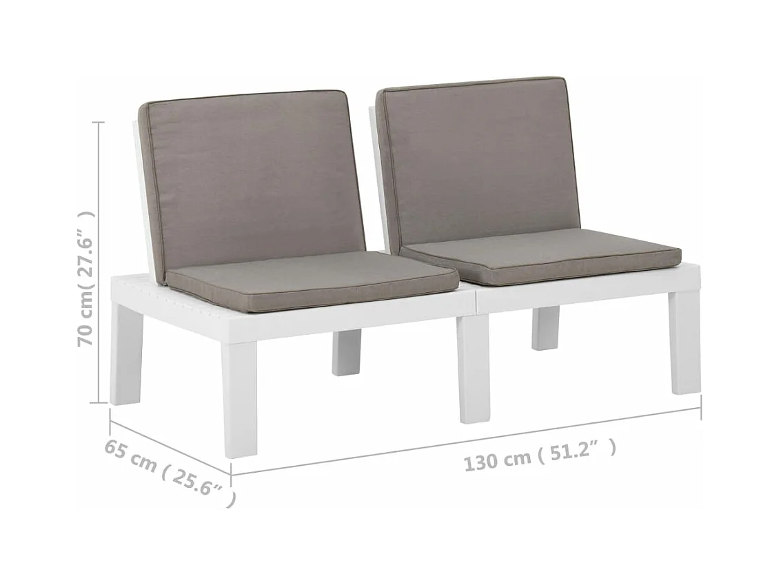 Banco de jardim móveis de pátio ao ar livre terraços de jardim 2 peças de plástico branco 02_0011850