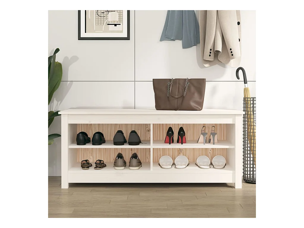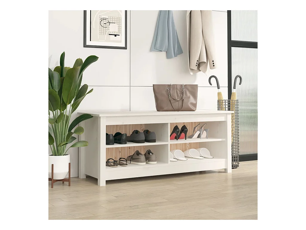 Banco para sapatos Branco 110x38x45,5 cm Madeira maciça de pinho