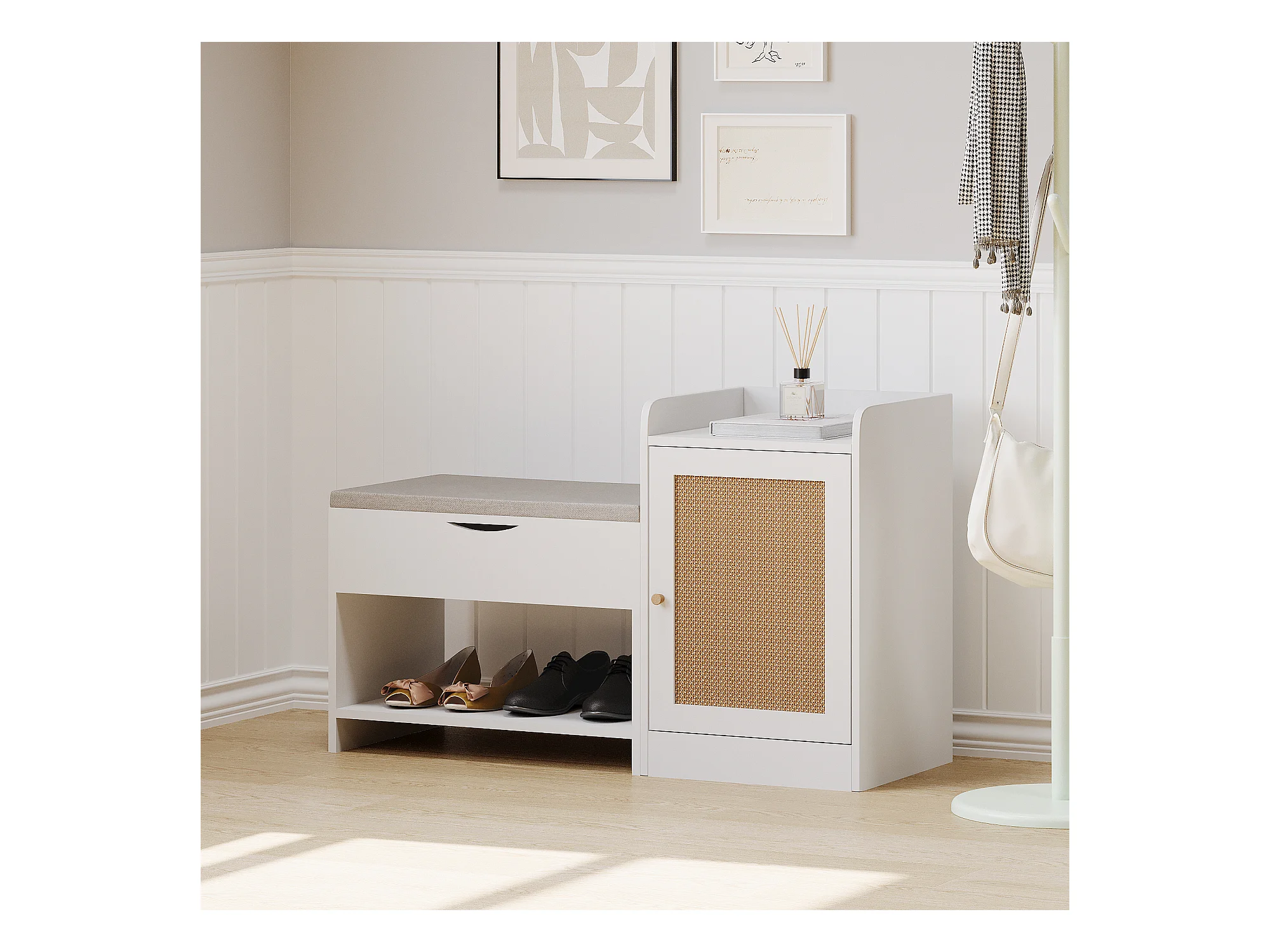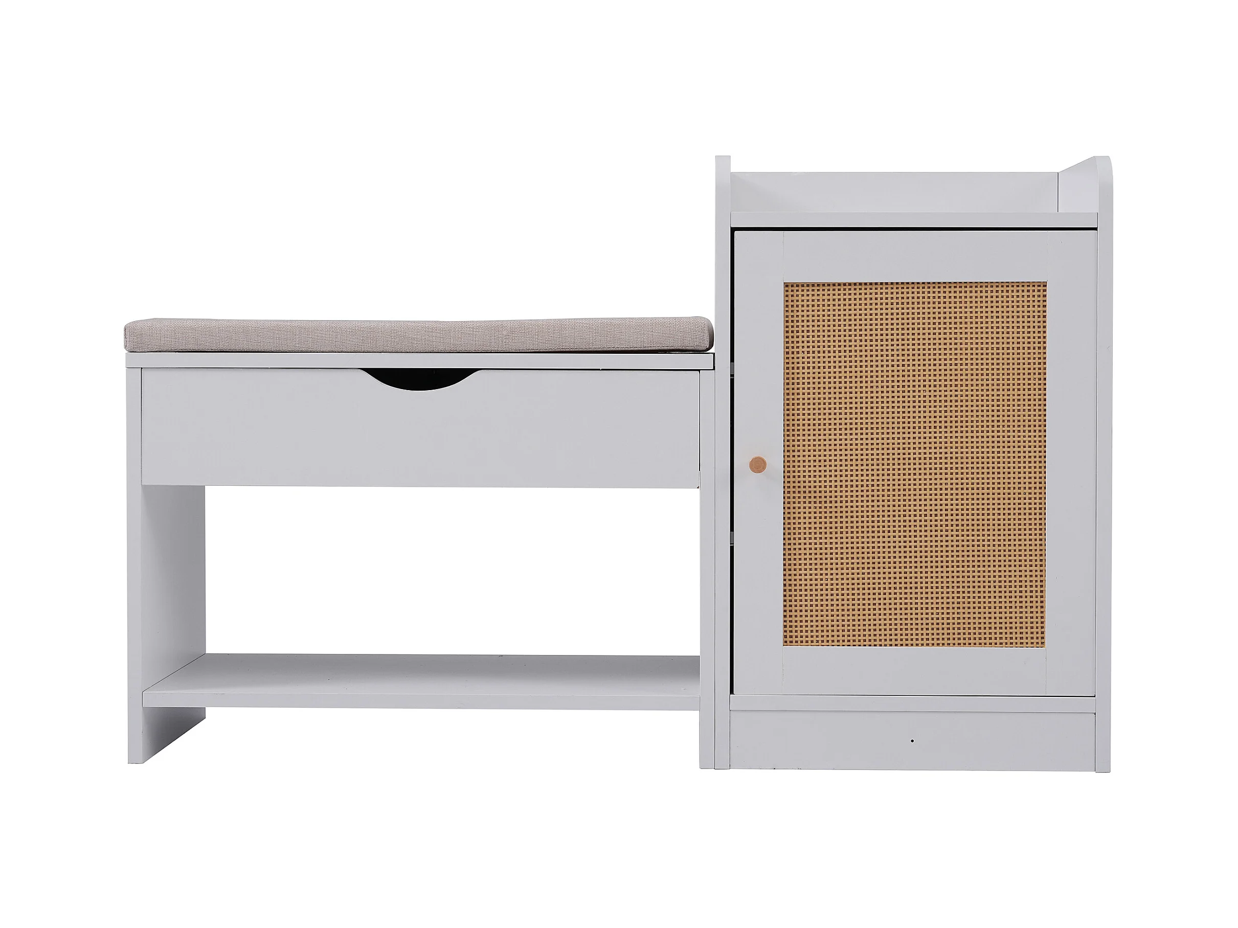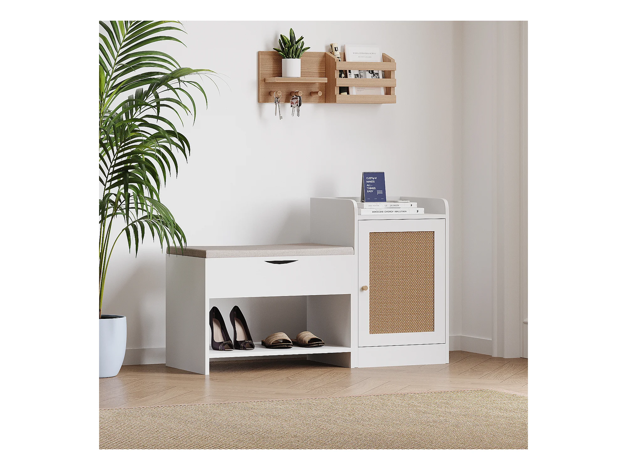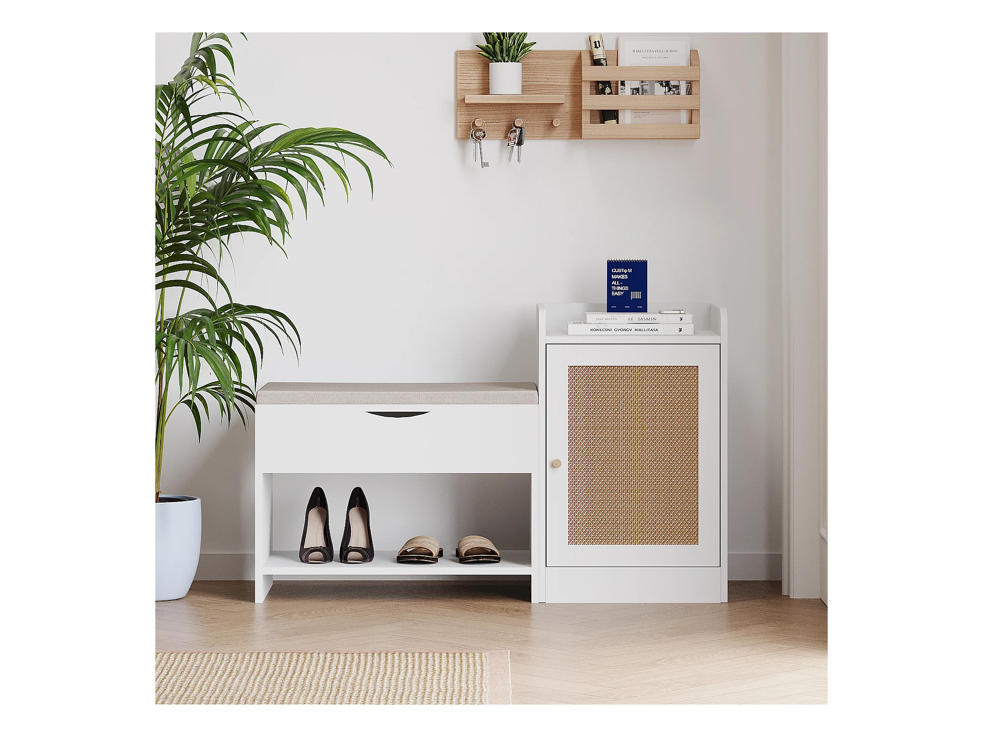Banco para sapatos com arrumação e porta de vime - 100 x 62,5 x 38 cm - Aglomerado - Branco