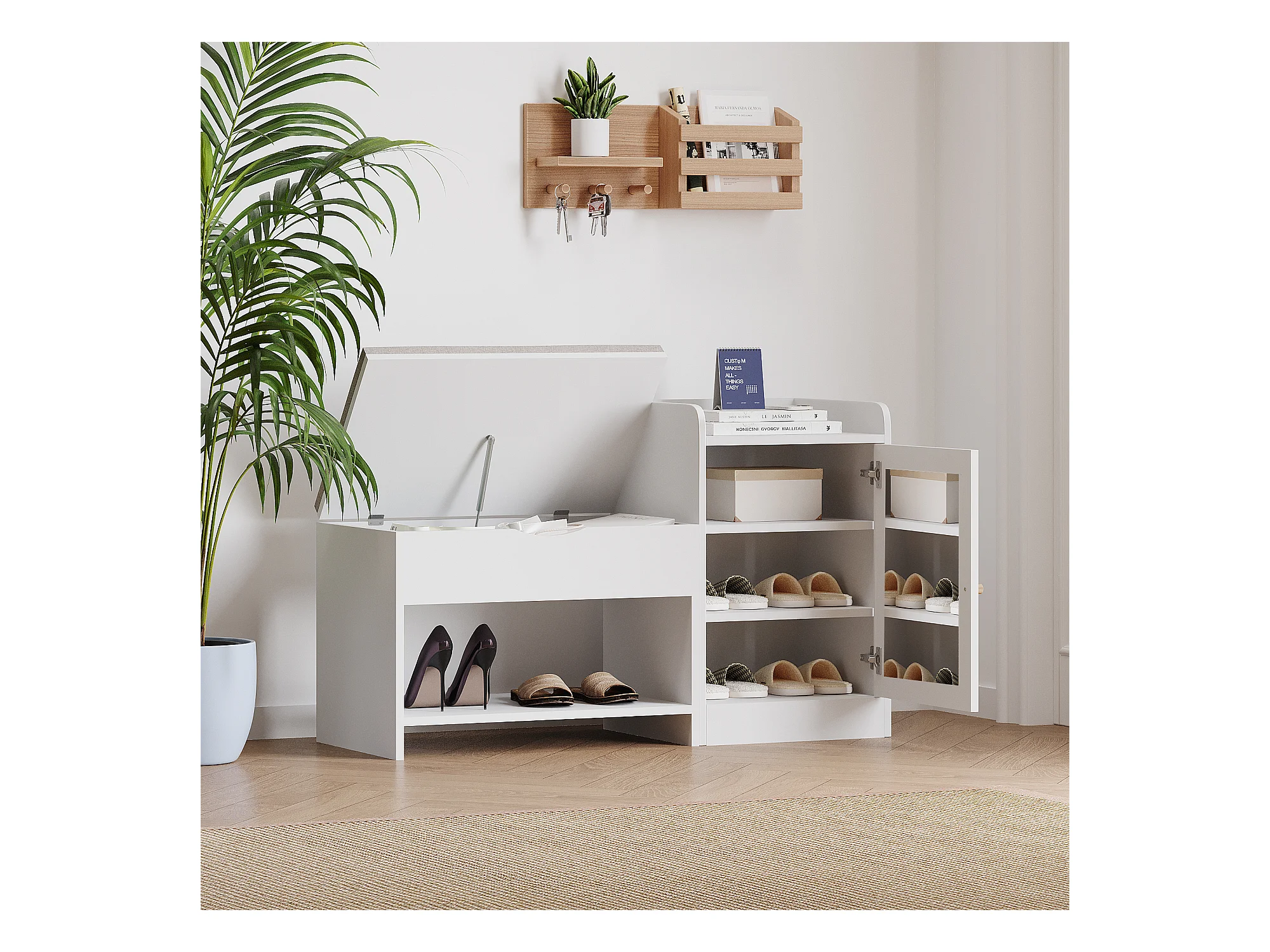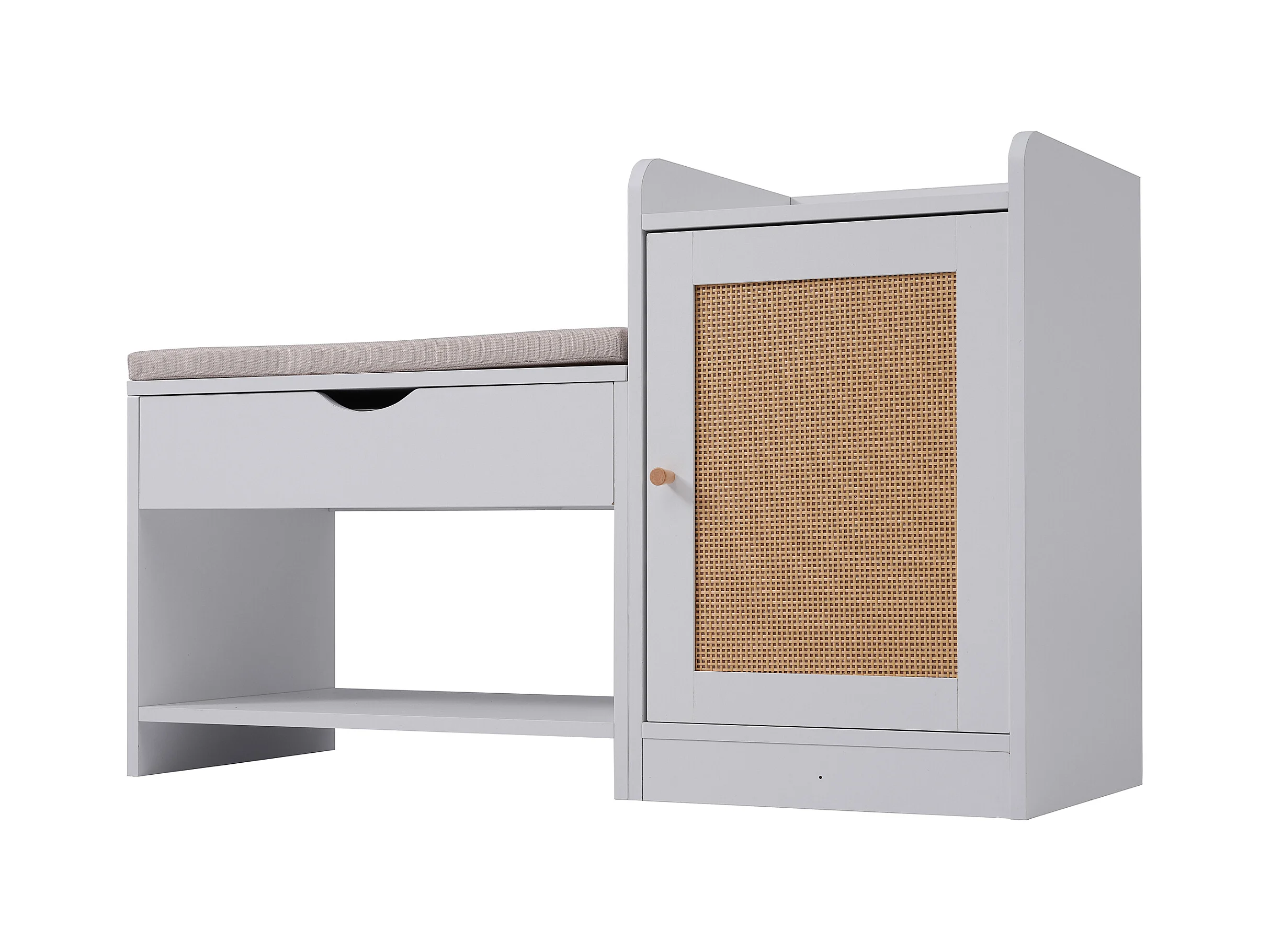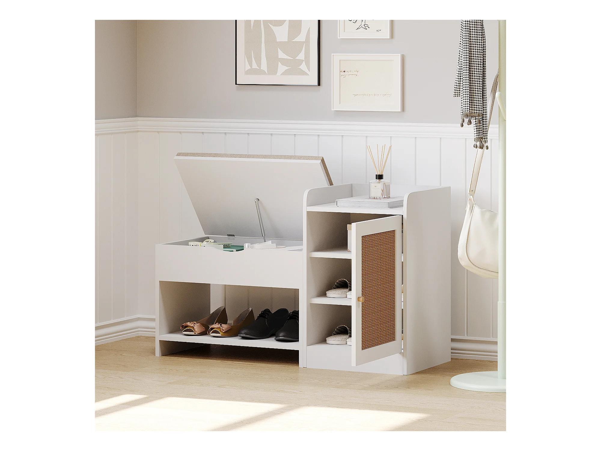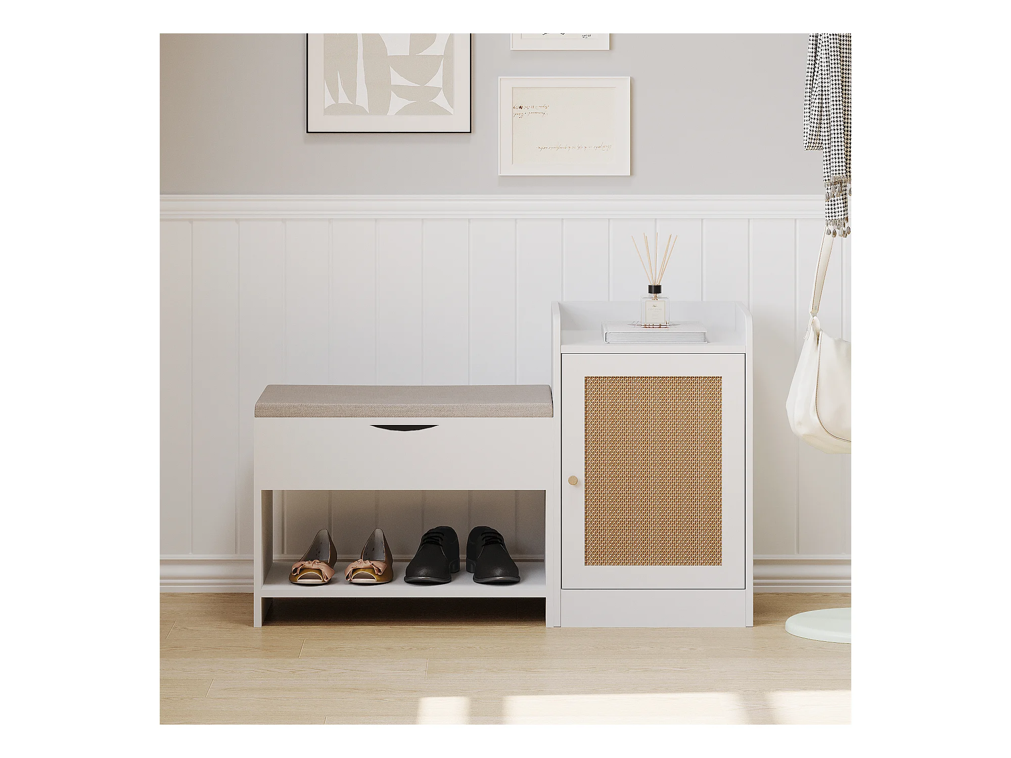 Banco para sapatos com arrumação e porta de vime - 100 x 62,5 x 38 cm - Aglomerado - Branco