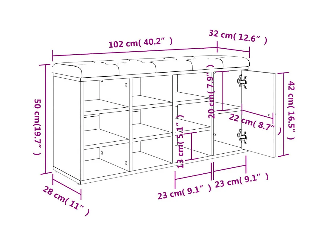 Banco sapateira 62x32x50 cm derivados madeira carvalho sonoma