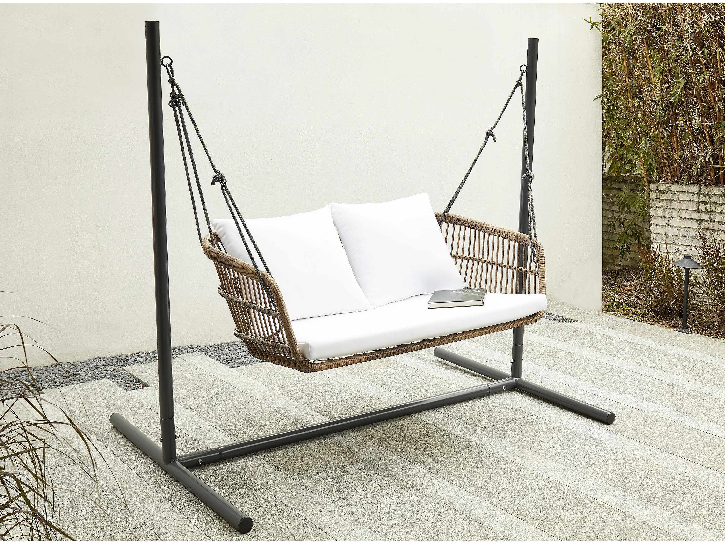 Banco suspenso de jardim 2 lugares em resina entrançada natural claro - NUVEA