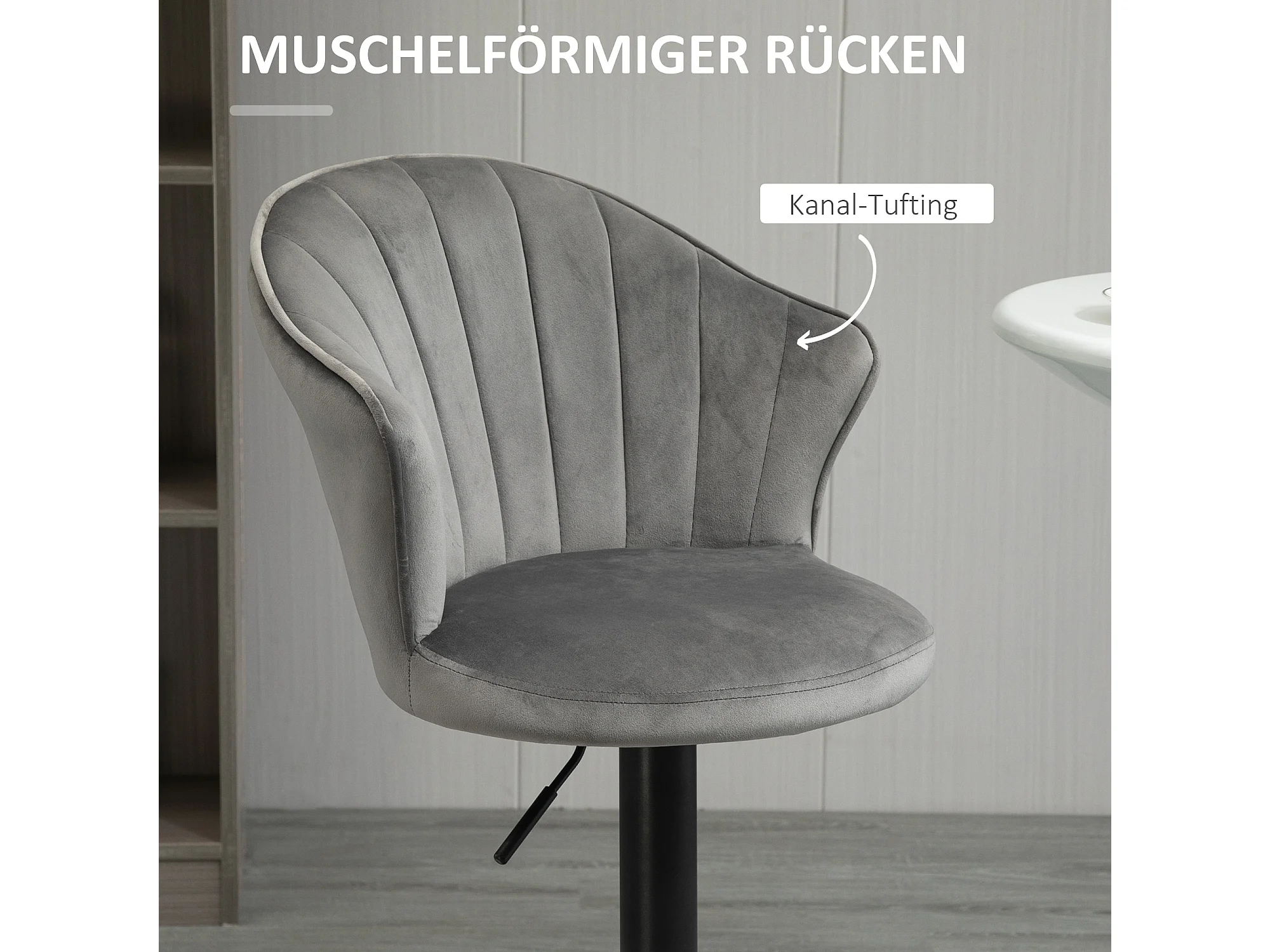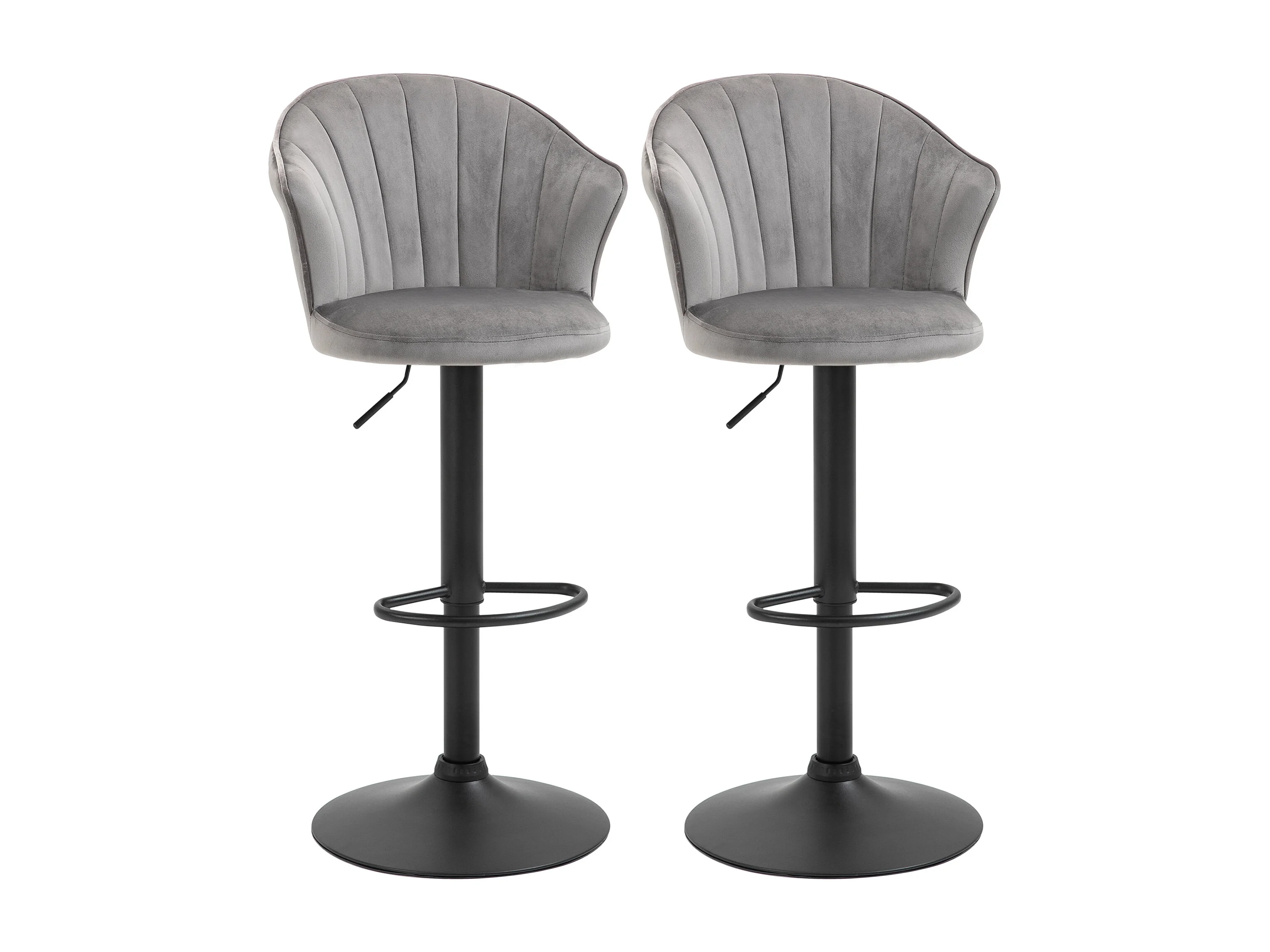 Bancos altos 2 peças tecido veludo cinza ajustável giratório sem braços 54x56x91-111 cm