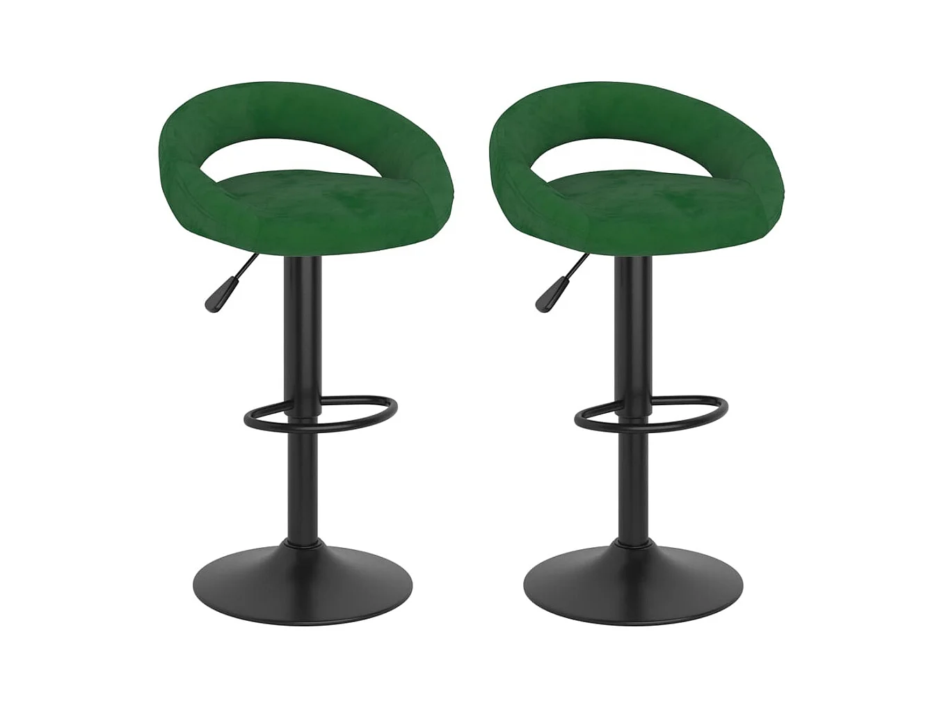 Conjunto de 2 Cadeiras de Bar em veludo - altura ajustável - giratório 360° - com descanso para pés - 53x51x87/105cm - Verde