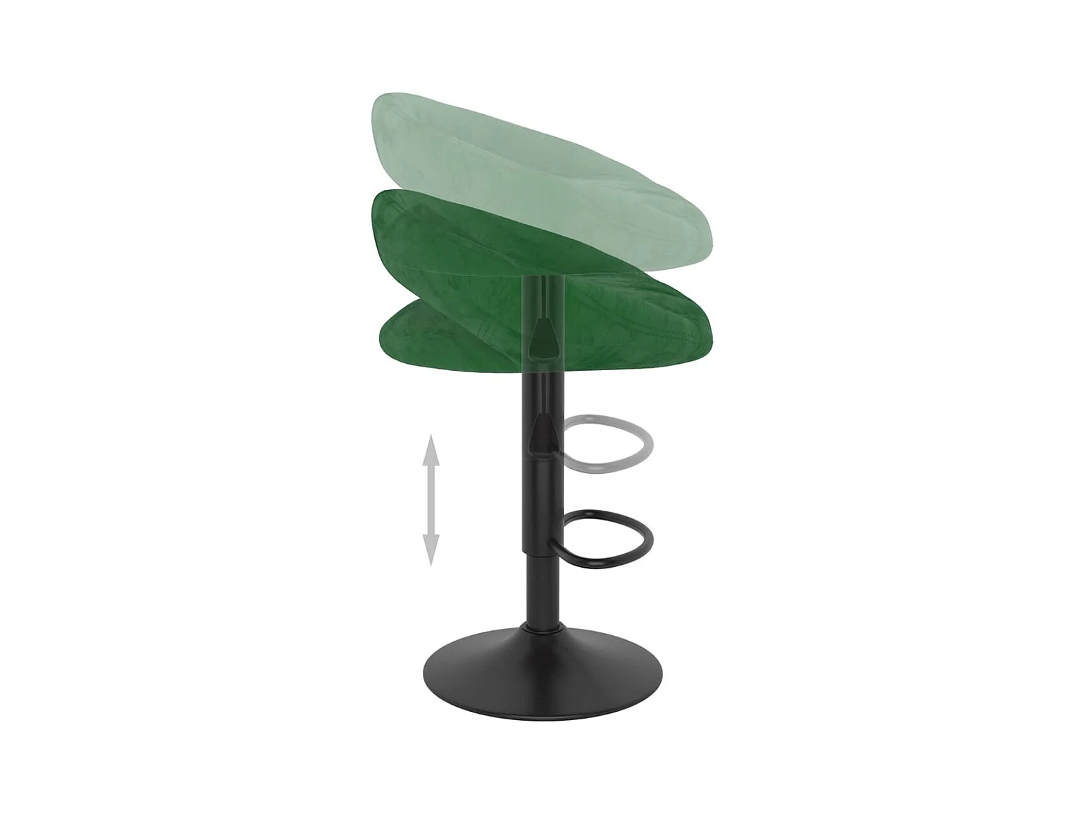 Conjunto de 2 bancos altos giratórios 360° - 54 x 46 x 78/97 - altura ajustável com encosto - veludo - verde