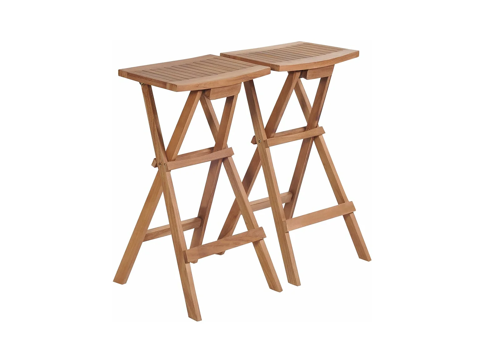 Bancos de bar dobráveis 2 unidades em madeira maciça de teca