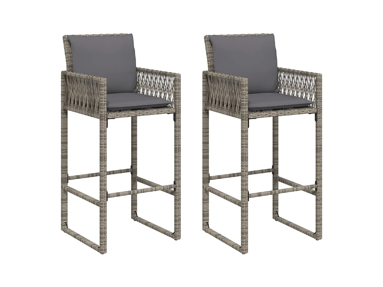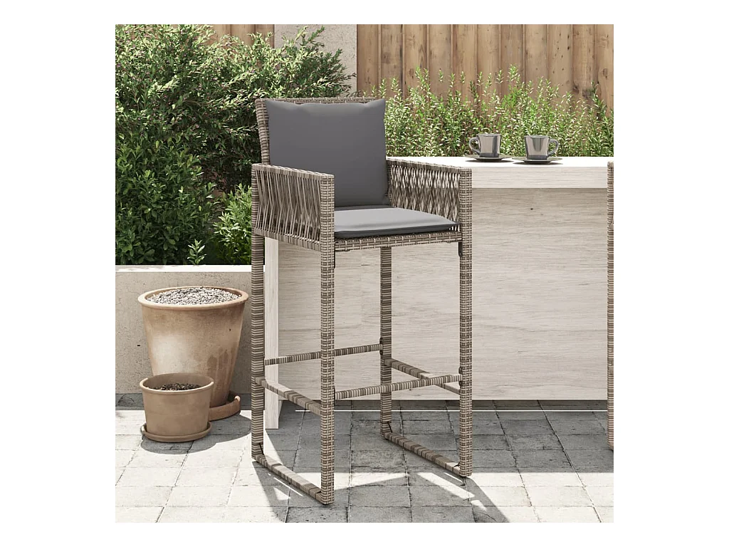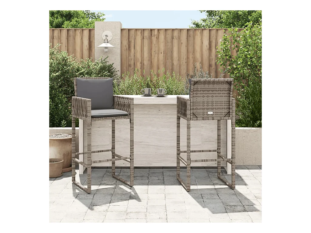 Bancos de bar p/ jardim com almofadões 2 pcs vime PE cinzento PT758182