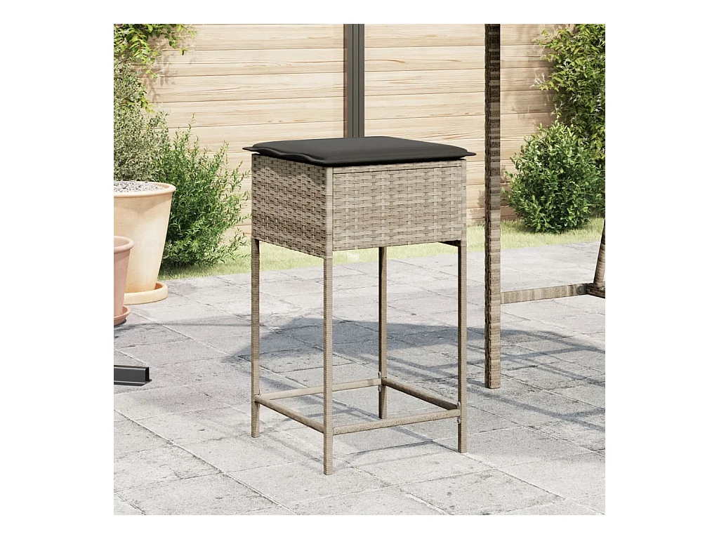 Bancos de bar p/ jardim com almofadões 2pcs vime PE cinza-claro PT456103