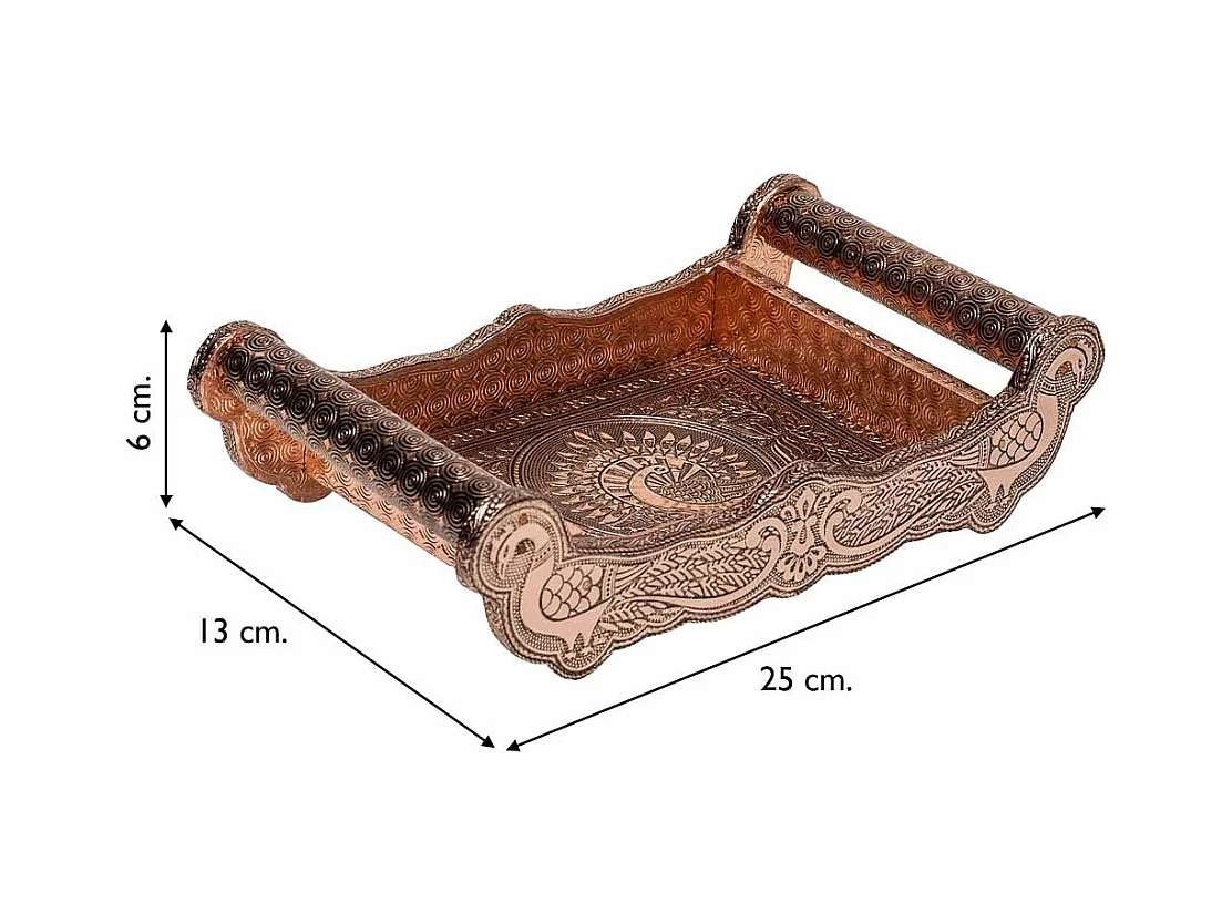 Bandeja de metal com relevo cor cobre 25x13x6