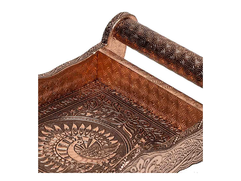 Bandeja de metal com relevo cor cobre 46x26x7