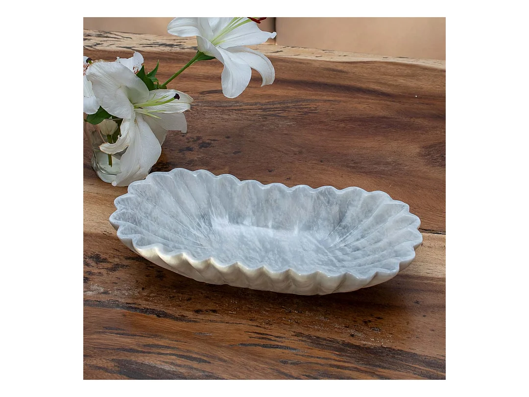Bandeja decorativa de mármore esculpido à mão com forma única ondulada