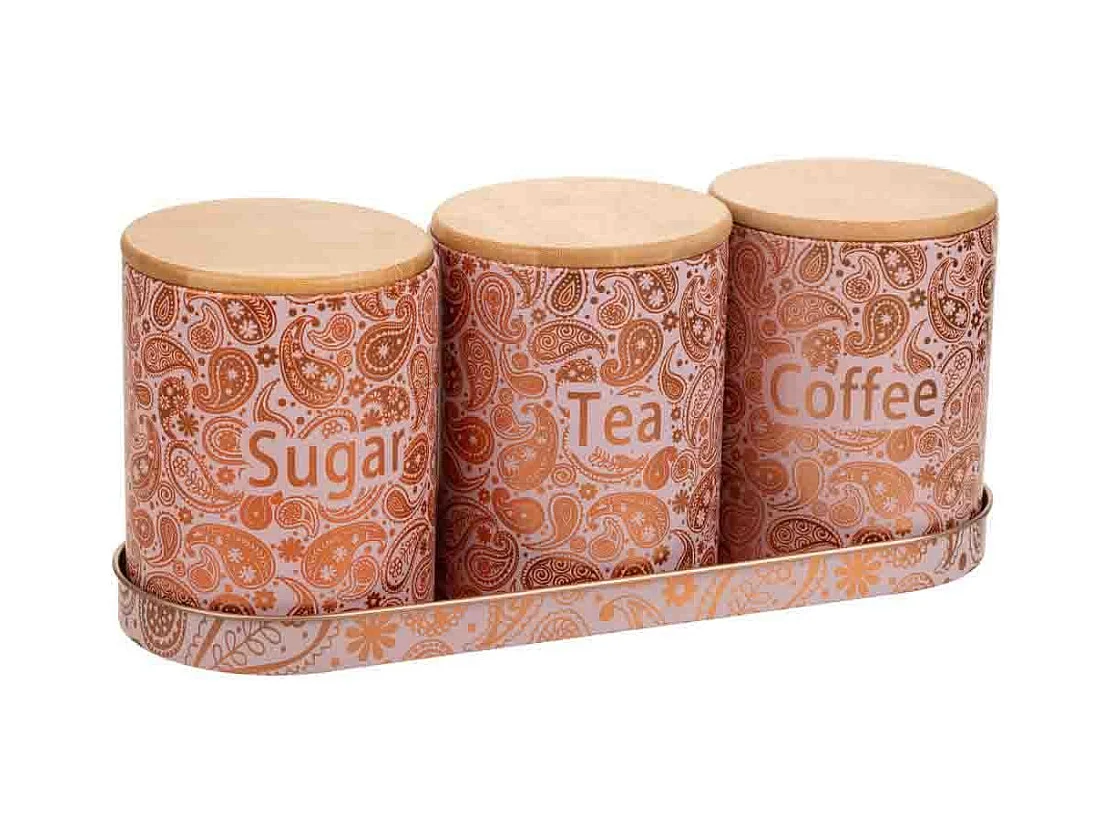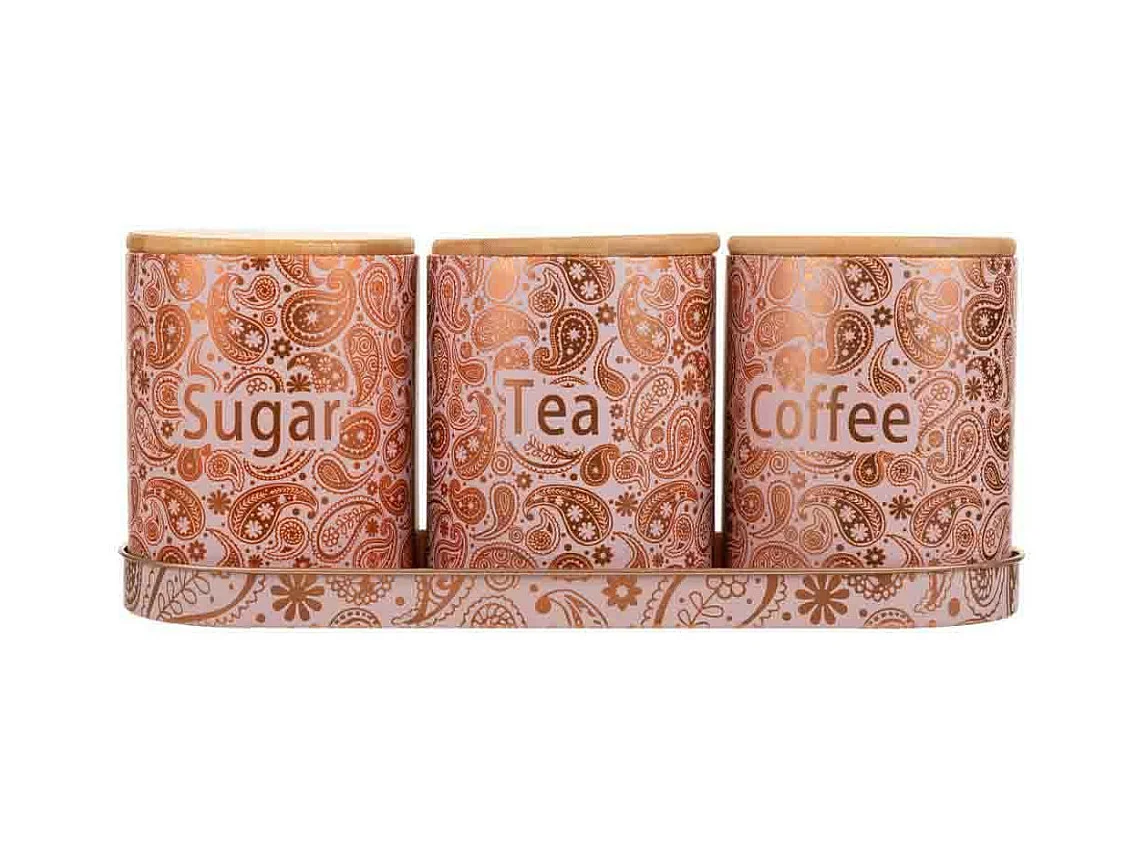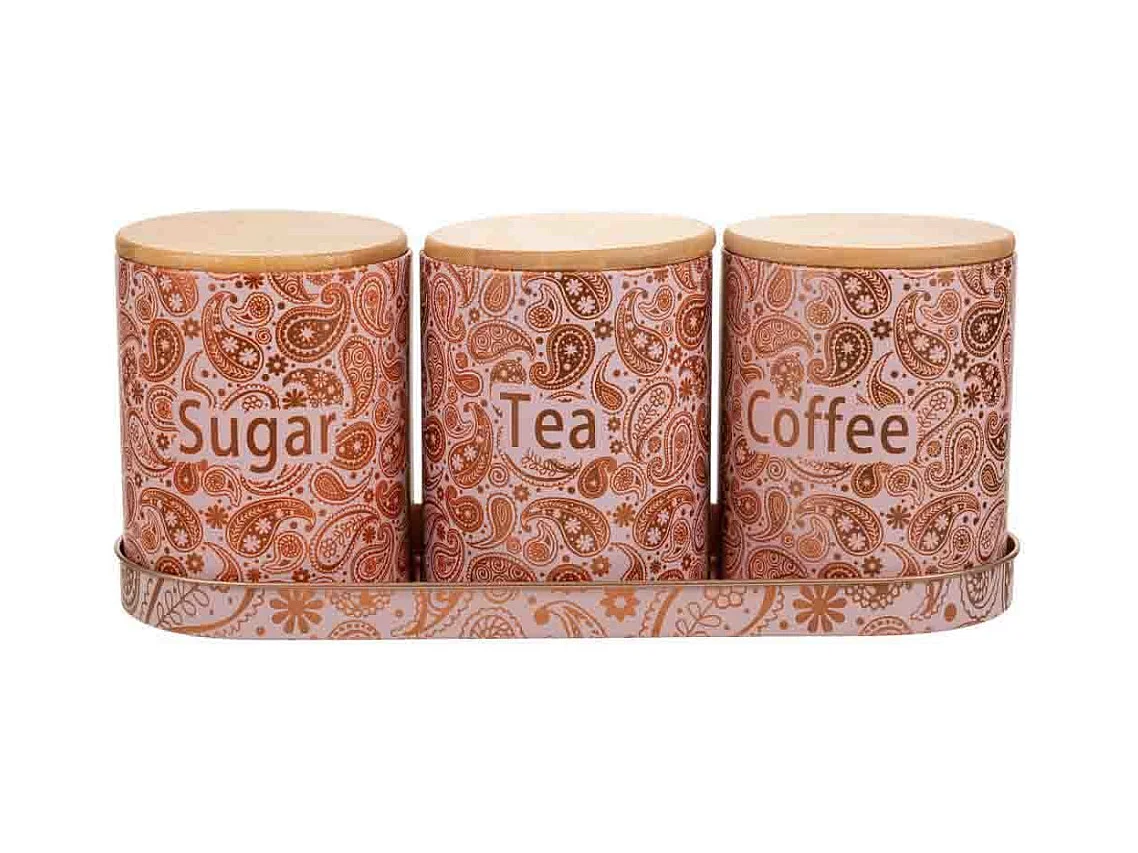 Bandeja e 3 potes de metal rosa