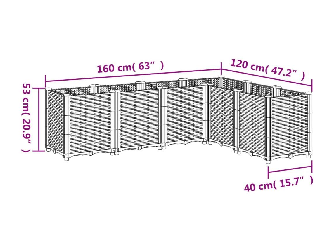 Bandeja para plantador de plantas com canteiro elevado flores terraço jardim 160 x 120 x 53 cm PP cinza 02_0037456